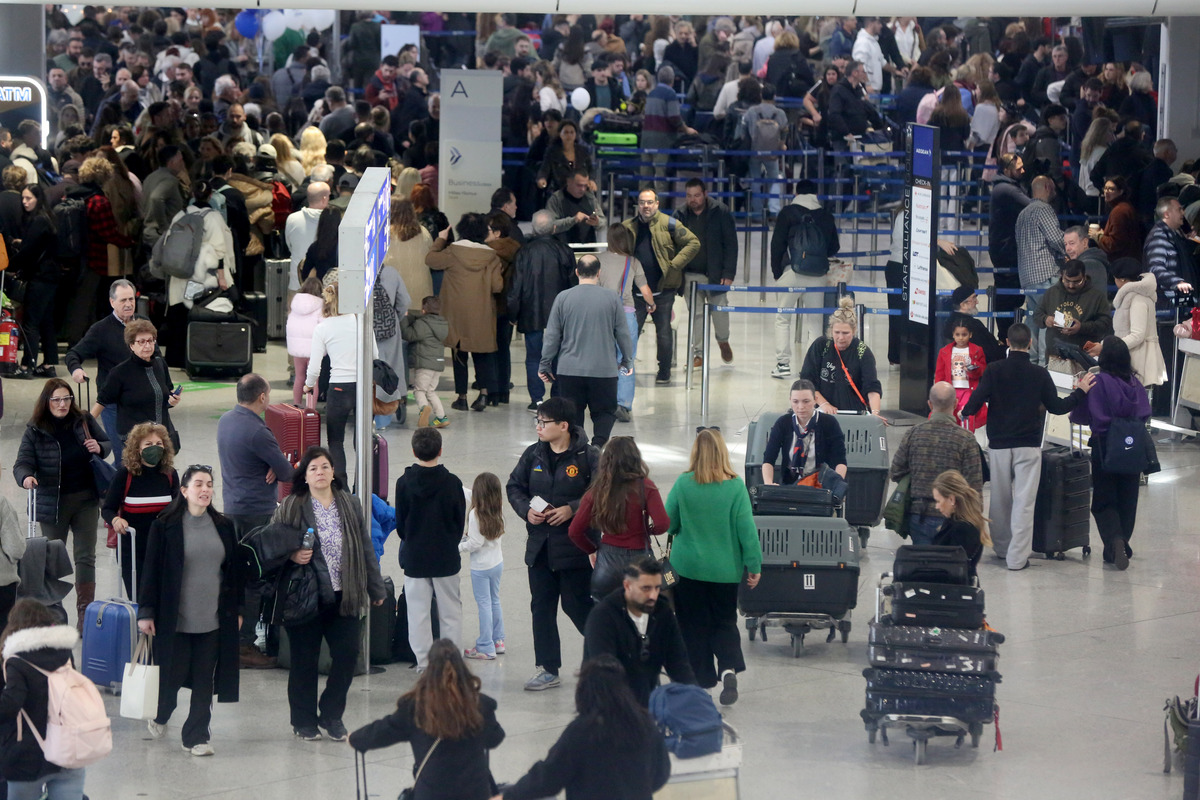 Επιβάτες περιμένουν να αναχωρήσουν από το αεροδρόμιο "Ελευθέριος Βενιζέλος", λόγω του τεχνικού θέματος που έχει παρουσιαστεί στο σύστημα Εναέριας Κυκλοφορίας, Κυριακή 4 Ιανουαρίου 2026. Σοβαρά προβλήματα με τις συχνότητες στον ελληνικό εναέριο χώρο καταγράφονται εδώ και λίγη ώρα με αποτέλεσμα την καθήλωση αεροσκαφών στα αεροδρόμια της χώρας. Σύμφωνα με πληροφορίες το ζήτημα παρουσιάστηκε σήμερα το πρωί λόγω προβλημάτων στις συχνότητες του Κέντρου Ελέγχου της Υπηρεσίας Πολιτικής Αεροπορίας στις εγκαταστάσεις στη Διεύθυνση Κέντρων Ελέγχου Περιοχής Αθηνών και Μακεδονίας στο Ελληνικό που διαχειρίζεται την εναέρια κυκλοφορία στις αντίστοιχες περιοχές ευθύνης της. ΑΠΕ-ΜΠΕ/ΑΠΕ-ΜΠΕ/ΑΛΕΞΑΝΔΡΟΣ ΒΛΑΧΟΣ
