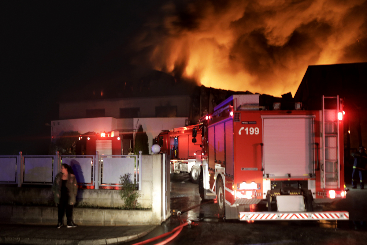Παραδόθηκε τις βραδινές ώρες στις φλόγες εργοστάσιο στη Βιομηχανική Περιοχή της Λαμίας, Κυριακή 19 Μαΐου 2024. Καταστράφηκε ολοσχερώς το εργοστάσιο της εταιρείας Γιαννίτση στην βιομηχανική περιοχή της Λαμίας από πυρκαγιά που ξέσπασε στις 9.30 το βράδυ της Κυριακής χωρίς μέχρι στιγμής να έχει διευκρινιστεί η αιτία.Το συγκεκριμένο εργοστάσιο είχε ετοιμάσει πριν από δυο ημέρες τα σχολικά γεύματα από τα οποία προκλήθηκε μαζική τροφική δηλητηρίαση σε μαθητές σχολείων της περιοχής. Στις 9.30 ειδοποιήθηκε η Πυροσβεστική και μέσα σε λίγα λεπτά έσπευσαν οι πυροσβέστες από την 7η ΕΜΑΚ, που βρίσκονται 200 μέτρα μακριά από το εργοστάσιο. Ωστόσο οι φλόγες είχαν τυλίξει το μεγαλύτερο μέρος του εργοστασίου και οι πυροσβέστες προσπαθούσαν από διάφορα τμήματα να συγκρατήσουν την ορμή τους.Δευτέρα 20 Μαΐου 2024. ΑΠΕ-ΜΠΕ/ΑΠΕ-ΜΠΕ/ΑΡΗΣ ΜΑΡΤΑΚΟΣ