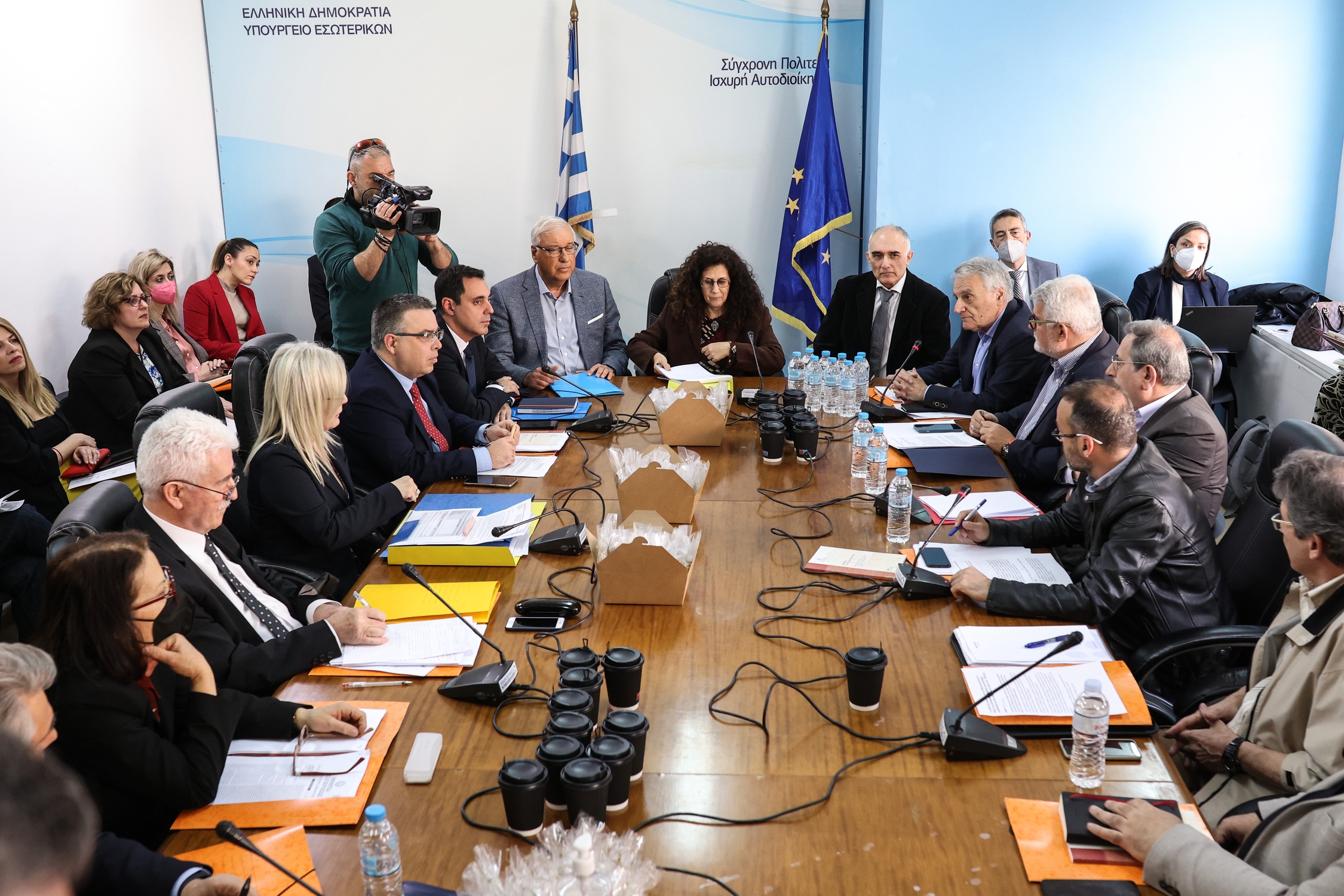 Σύσκεψη της Διακομματικής Επιτροπής για τους όρους διεξαγωγής της προεκλογικής προβολής των κομμάτων υπό την εποπτεία της Υπουργού Εσωτερικών, Καλλιόπη Σπανού, στο Υπουργείο Εσωτερικών στις 27 Απριλίου 2023.