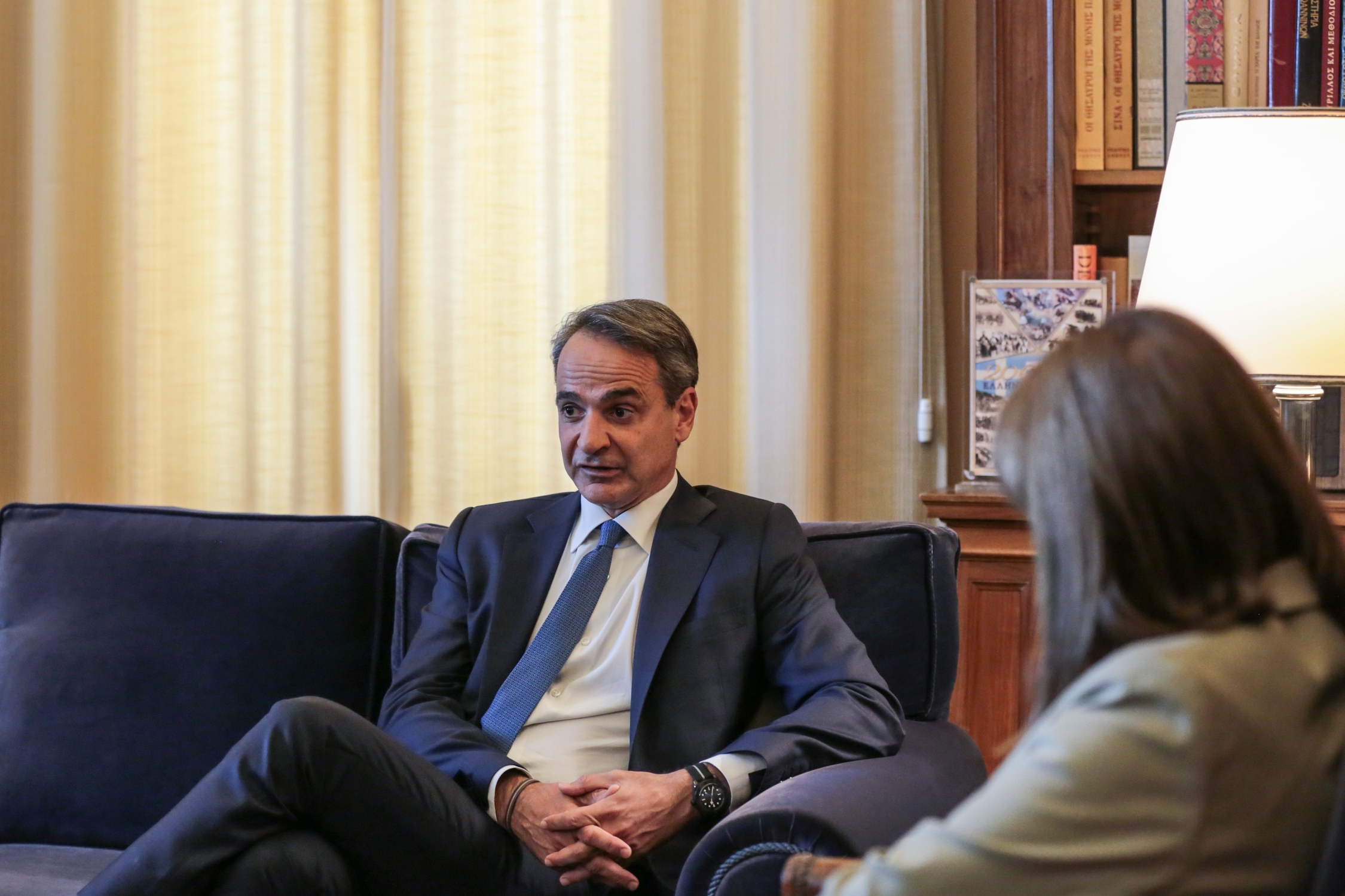 Meeting between the President of Greece Katerina Sakellaropoulou and the Prime Minister of Greece Kyriakos Mitsotakis in order to receive the governing order after New Democracy's victory at the latest elections, in Athens, on May. 22, 2023 / Συνάντηση της Προέδρου της Δημοκρατίας Κατερίνας Σακελλαροπούλου με τον πρωθυπουργό Κυριάκο Μητσοτάκη, με σκοπό την παραλαβή της διερευνητικής εντολής για τον σχηματισμό κυβέρνησης, μετά τη νίκη της Νέας Δημοκρατίας στις εκλογές, στην Αθήνα, στις 22 Μαίου, 2023