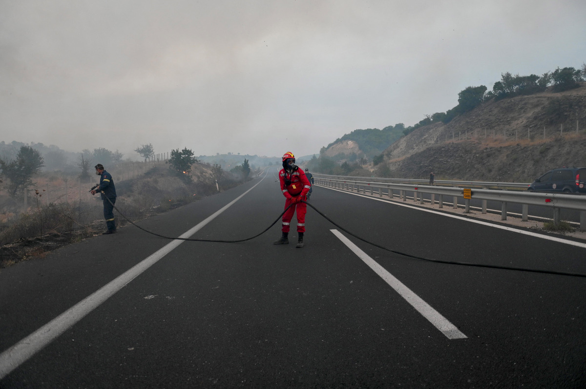 Πυροσβέστες επιχειρούν στην κατάσβεση της φωτιάς μετά από αναζωπύρωση στην Εγνατία Οδό Αλεξανδρούπολης - Κομοτηνής, την Τετάρτη 23 Αυγούστου 2023. ΑΠΕ-ΜΠΕ/ΑΠΕ-ΜΠΕ/ΔΗΜΗΤΡΗΣ ΑΛΕΞΟΥΔΗΣ