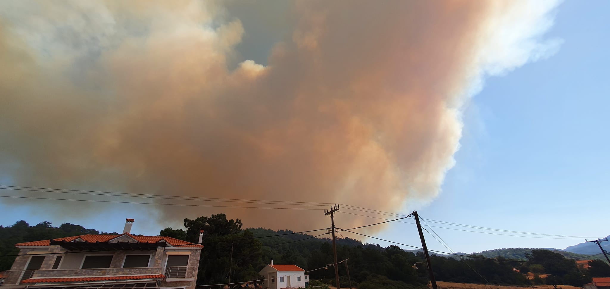Το συντονιστικό της Πυροσβεστικής σε συνεργασία με την τοπική αυτοδιοίκηση ζήτησαν για προληπτικούς λόγους την εκκένωση του οικισμού. Είναι τόσο πυκνός ο καπνός που ακόμα και ο ήλιος έχει κρυφτεί.