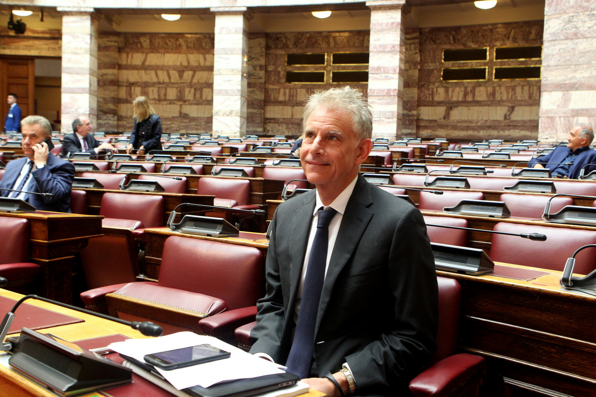 Ο εισηγητής της Νέας Δημοκρατίας Σπύρος Πνευματικός στην αίθουσα της ολομέλειας της Βουλής όπου πραγματοποιήθηκε κοινή συνεδριαση επιτροπών , Δευτέρα 25 Μαΐου 2020. Συνεδρίασαν η διαρκής επιτροπή κοινωνικών υποθέσεων και η διαρκής επιτροπή οικονομικών υποθέσεων της Βουλής με θέμα ημερήσιας διάταξης : Επεξεργασία και εξέταση του σχεδίου νόμου του Υπουργείου Υγείας «Κύρωση: α) της από 13.4.2020 Π.Ν.Π. « Μέτρα για την αντιμετώπιση των συνεχιζόμενων συνεπειών της πανδημίας του κορονοϊού COVID-19 και άλλες κατεπείγουσες διατάξεις» (A΄ 84) και β) της από 1.5.2020 Π.Ν.Π. «Περαιτέρω μέτρα για την αντιμετώπιση των συνεχιζόμενων συνεπειών της πανδημίας του κορονοϊού COVID-19 και την επάνοδο στην κοινωνική και οικονομική κανονικότητα» (Α΄90) και άλλες διατάξεις». ΑΠΕ-ΜΠΕ/ΑΠΕ-ΜΠΕ/Παντελής Σαίτας