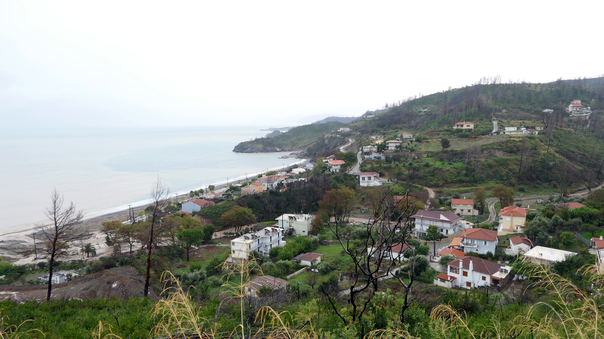 Φωτογραφία από drone που εικονίζει άποψη της περιοχής Αχλάδι στη βόρεια Εύβοια, στην οποία κατέπεσε ιδιωτικό ελικόπτερο ενώ ταυτόχρονα πλήττεται από την κακοκαιρία Elias, Πέμπτη 28 Σεπτεμβρίου 2023. Σύμφωνα με τις πρώτες πληροφορίες το ελικόπτερο κατέπεσε στο Αχλάδι Εύβοιας με επιβαίνοντες 2 άτομα. Το ελικόπτερο χάθηκε από τα ραντάρ της ΥΠΑ ενώ πετούσε πάνω από τη Βόρεια Εύβοια. Πρόκειται για Agusta Α109, πολιτικού τύπου και εκτελούσε ιδωτική πτήση, Αφίδναι- Μαντούδι - Βιομηχανική Περιοχή Βόλου . Απογειώθηκε στις 10:13´ το πρωί και ξαφνικά χάθηκε το στίγμα του από τα ραντάρ της ΥΠΑ.Σε εξέλιξη είναι αεροναυαγοσωστική επιχείρηση με Super Puma. ΑΠΕ-ΜΠΕ/ΑΠΕ-ΜΠΕ/STR