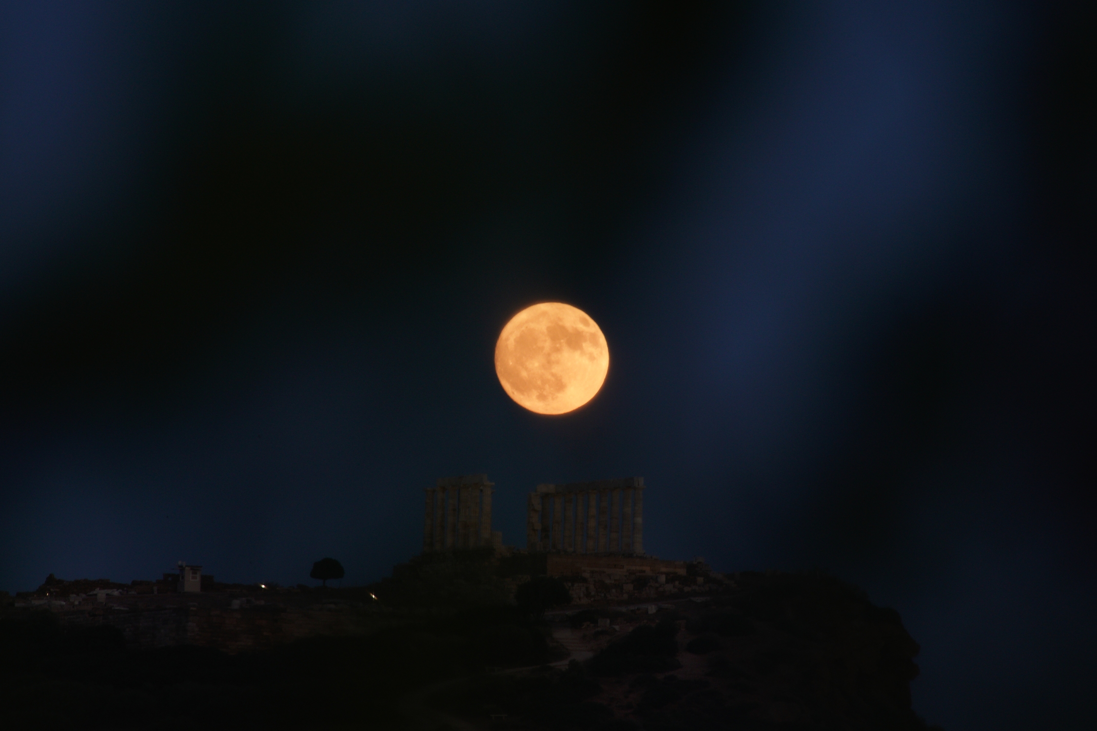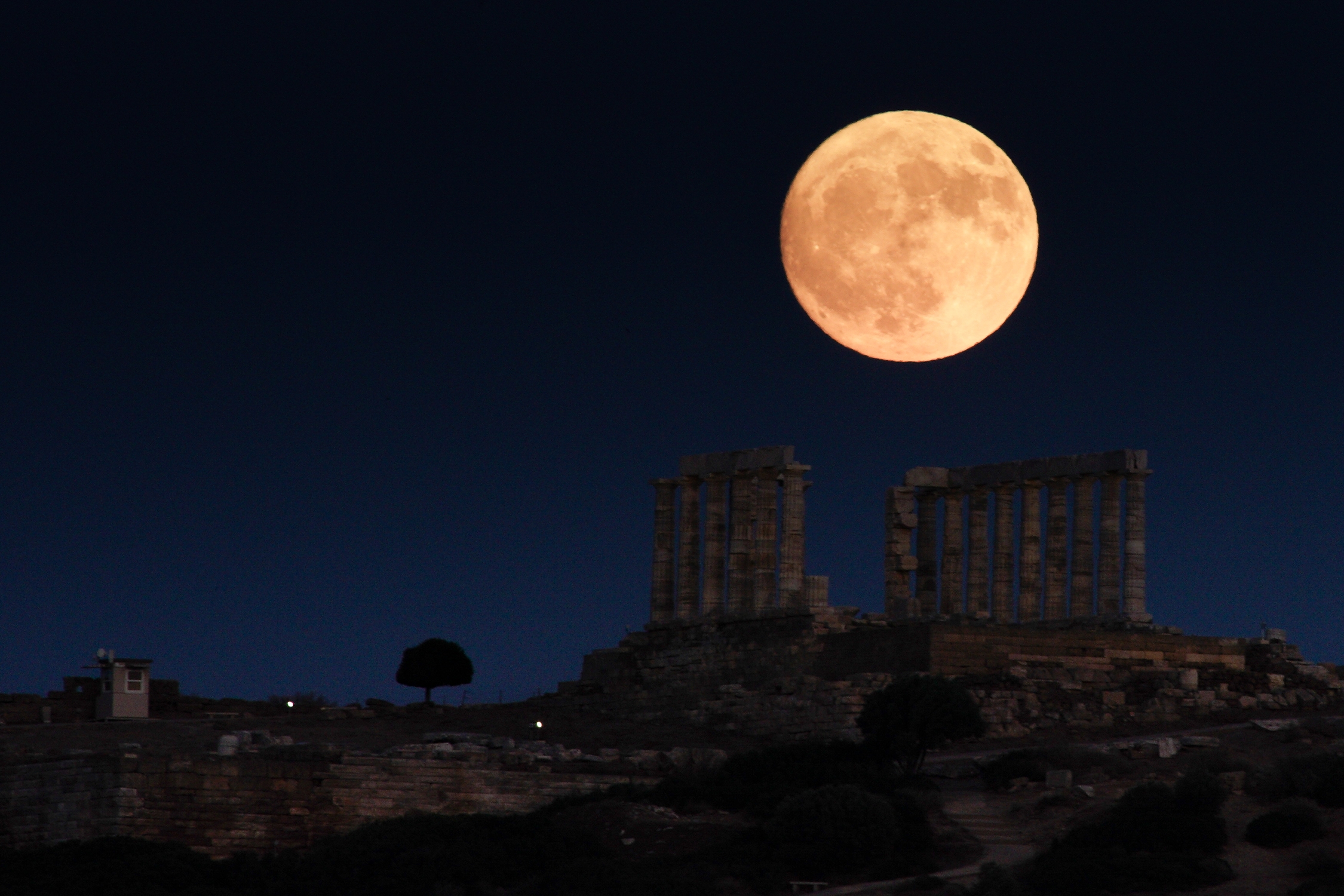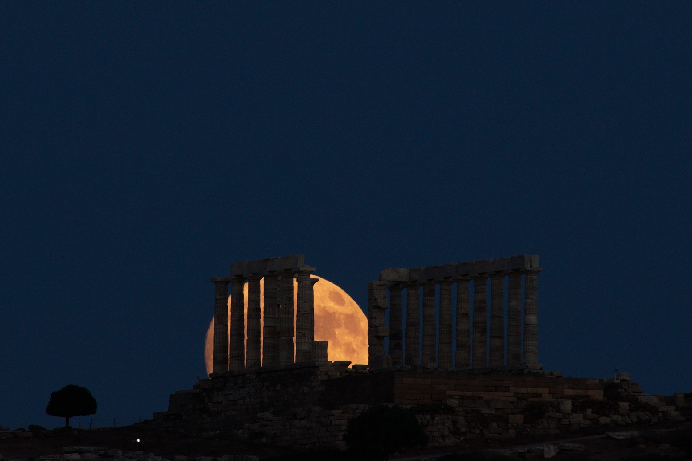 Δείτε φωτογραφίες από την «Πανσέληνο του Ελαφιού» να υψώνεται πάνω από τον αρχαίο ναό του Ποσειδώνα, στο ακρωτήριο Σούνιο: