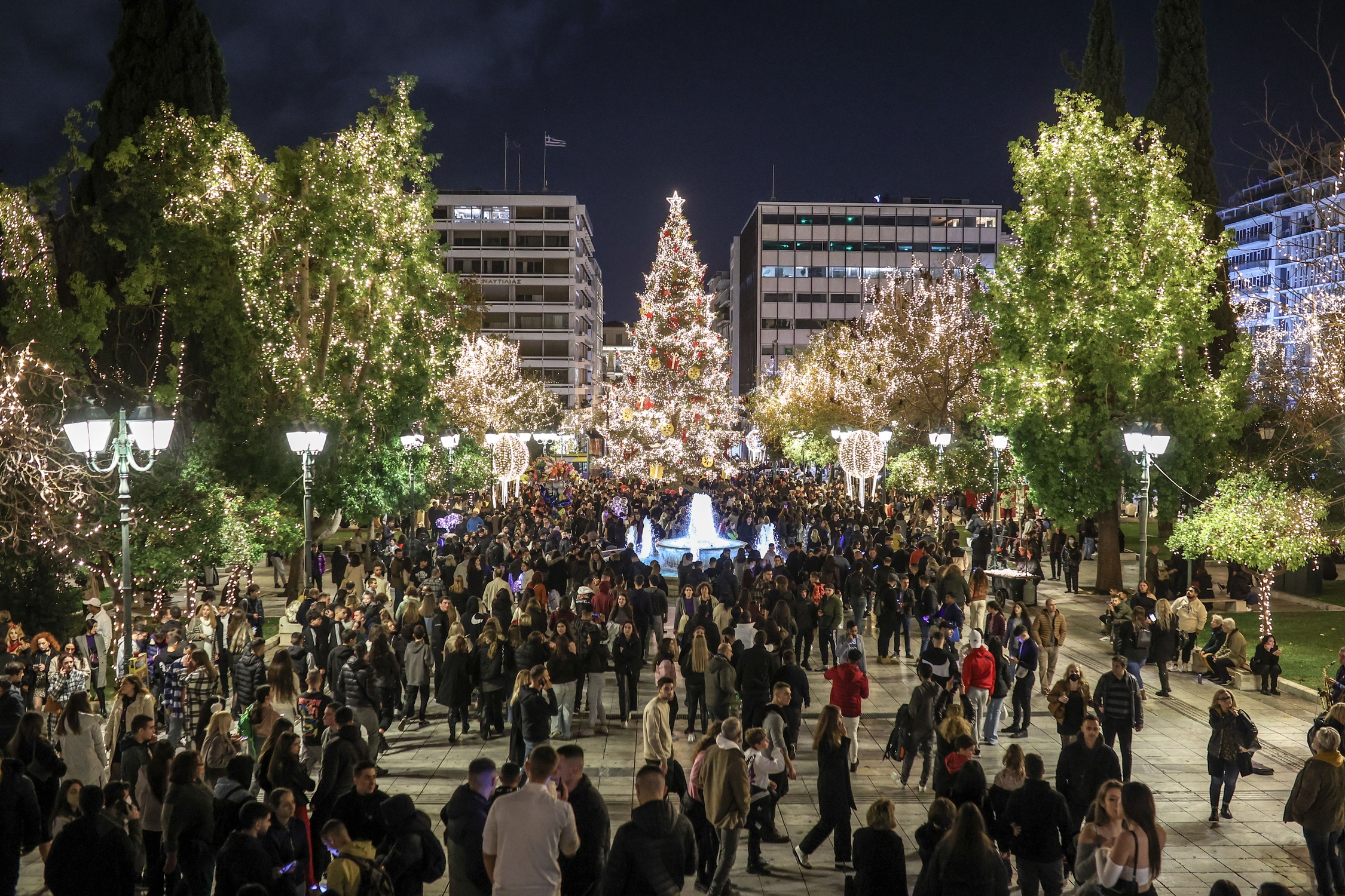 People enjoy the christmas decorations at Syntagma Square, in Athens, on December 10, 2022/ Κόσμος απολαμβάνει τον χριστουγεννιάτικο στολισμό στην Πλατεία Συντάγματος, στην Αθήνα, στις 10 Δεκεμβρίου 2022