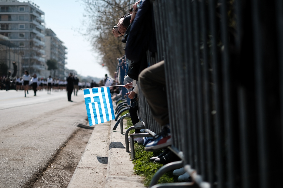Students parade commemorating the start of the War of Greek Independence in 1821, in Thessaloniki, Greece on Sunday March 25, 2023. / Μαθητική παρέλαση για τον εορτασμό της Ελληνικής Επανάστασης του 1821, στην Θεσσαλονίκη, Ελλάδα, 25 Μαρτίου 2023.