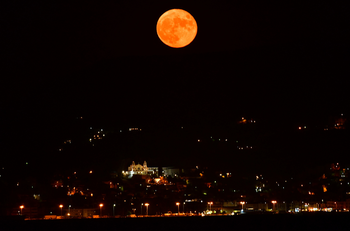 Το φεγγάρι ανατέλλει πάνω από το Ναύπλιο, Σάββατο 24 Ιουλίου 2021. Η συγκεκριμένη Πανσέληνος έχει και άλλες ονομασίες όπως «Πανσέληνος του Κεραυνού» «Πανσέληνος του Σανού», «Πανσέληνος του Υδρόμελου», όμως η επικρατέστερη είναι η «Πανσέληνος του Ελαφιού», καθώς σύμφωνα με την παράδοση κάθε χρόνο τέτοια εποχή, τα νέα κέρατα των αρσενικών ελαφιών άρχιζαν να βγαίνουν από το μέτωπό τους, «καλυμμένα» με βελούδινo και απαλό τρίχωμα. ΑΠΕ-ΜΠΕ /ΑΠΕ-ΜΠΕ/ΜΠΟΥΓΙΩΤΗΣ ΕΥΑΓΓΕΛΟΣ
