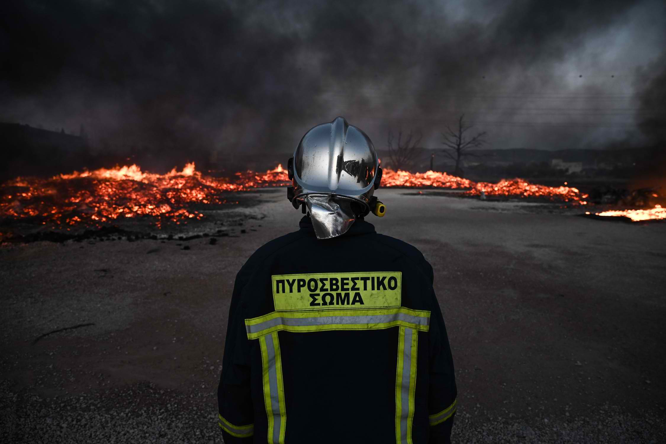 Η φωτιά καίει εντός αστικού ιστού στην περιοχή της Αγίας Μαρίνας, όπου υπάρχουν διάσπαρτα σπίτια.