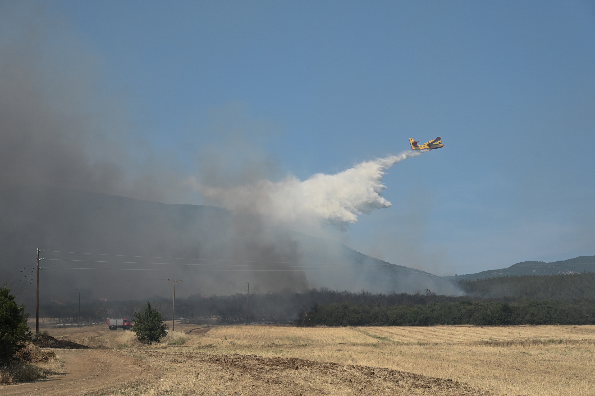 Κατάσβεση πυρκαγιάς κοντά στο χωριό Λίμνη του Δήμου Βόλβης, Θεσσαλονίκη, 20 Ιουνίου 2024.