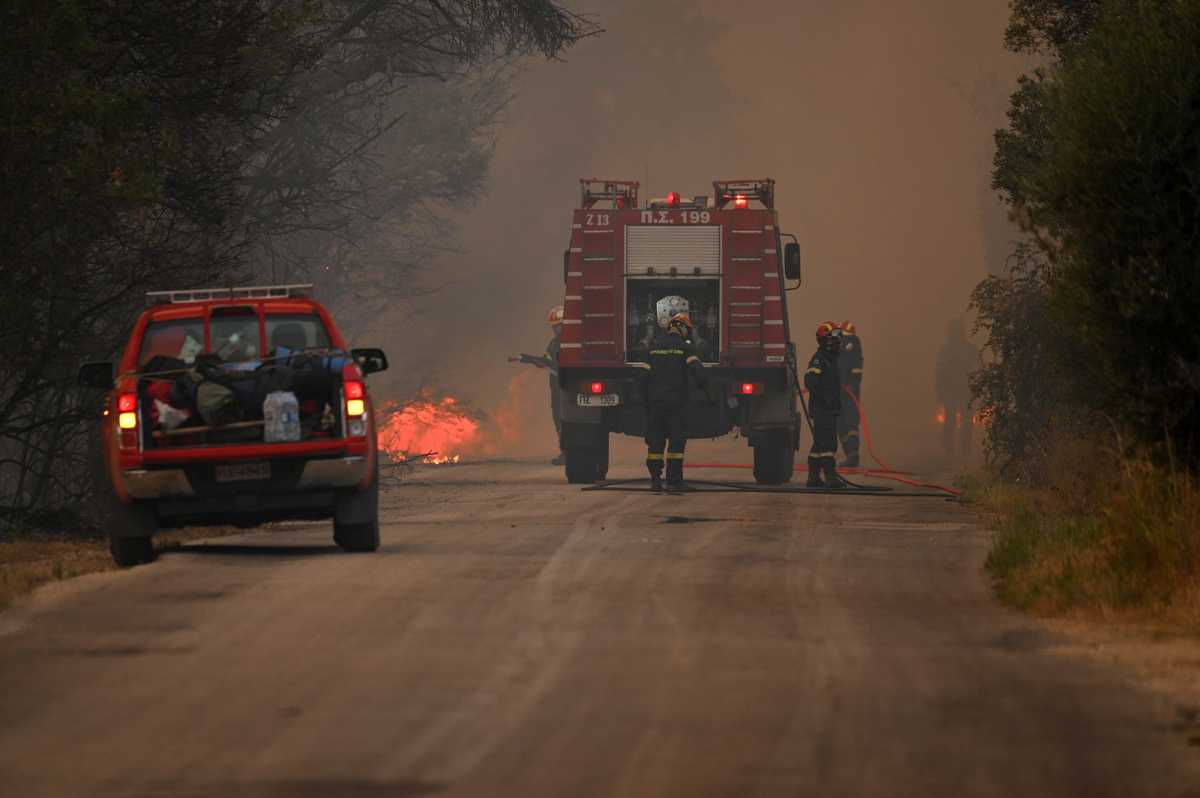 Πυροσβέστες επιχειρούν στην κατάσβεση φωτιάς στον oικισμό Άβαντα στην Αλεξανδρούπολη, Τρίτη 22 Αυγούστου 2023. Η καταστροφική πορεία της φωτιάς -παρά τις υπεράνθρωπες προσπάθειες των πυροσβεστικών δυνάμεων και λόγω των ισχυρών ανέμων που εξακολουθούν να πνέουν στον δήμο Αλεξανδρούπολης- συνεχίζεται, με αποτέλεσμα την εκκένωση μετά τις 02.00 παραθαλάσσιων οικισμών δυτικά της πόλης: πρόκειται για τις κοινότητες Δίκελα, Μάκρη, Νέα Χιλή, Ελαιώνας, Άη-Γιώργης, Πλάκα, Ένατο, Πεύκη αλλά και του νοσοκομείου Αλεξανδρούπολης. ΑΠΕ-ΜΠΕ/ΑΠΕ-ΜΠΕ/ΔΗΜΗΤΡΗΣ ΑΛΕΞΟΥΔΗΣ