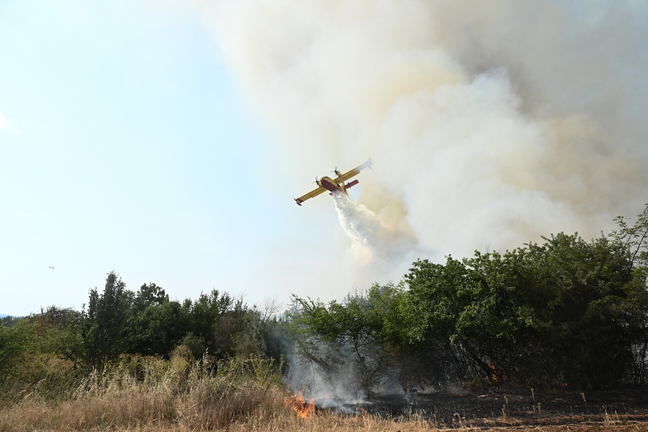 Κατάσβεση πυρκαγιάς κοντά στο χωριό Λίμνη του Δήμου Βόλβης, Θεσσαλονίκη, 20 Ιουνίου 2024.