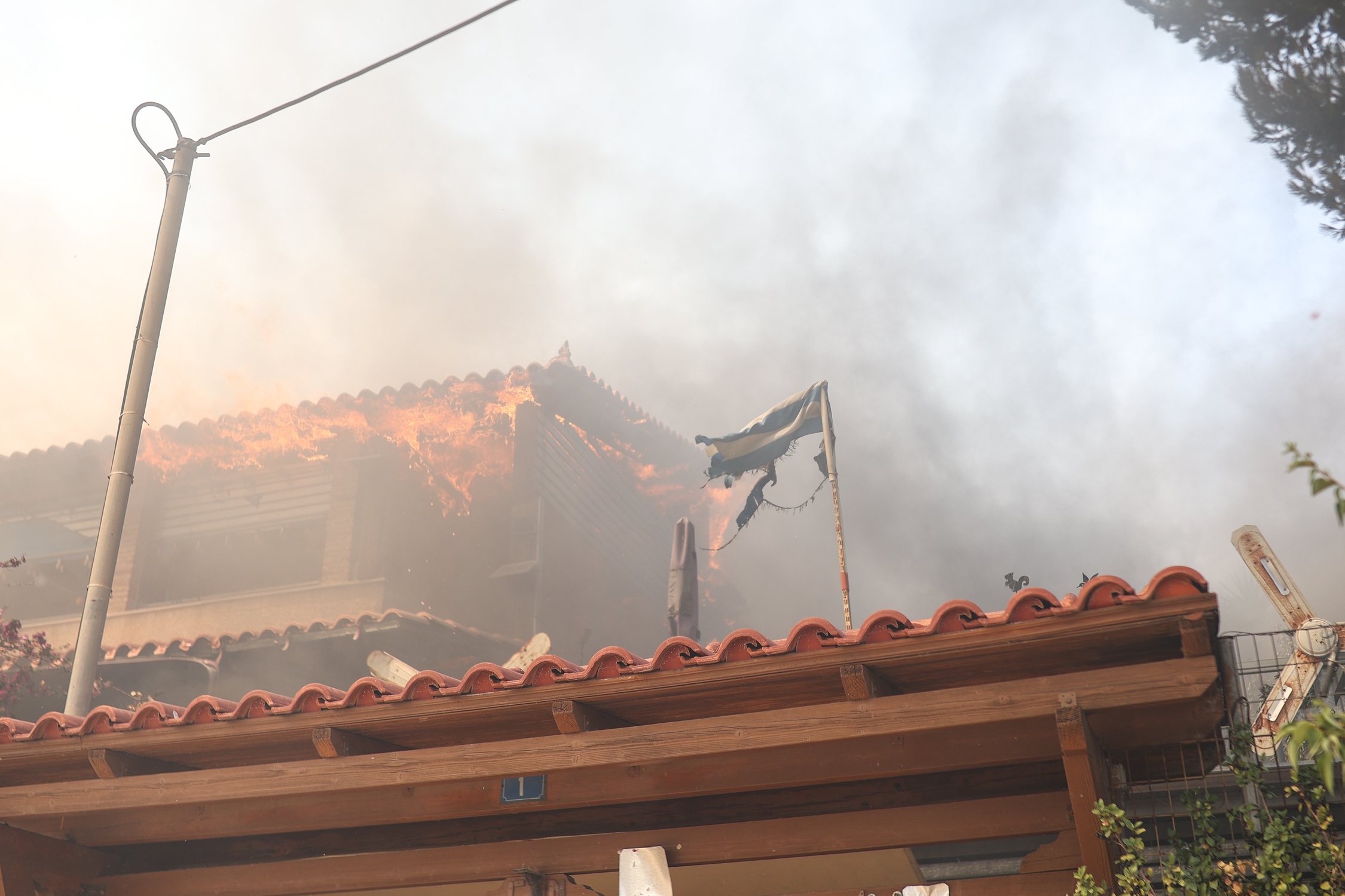 Wildfire in Kouvaras, eastern Attica, Greece on July 17, 2023. / Κατάσβεση πυρκαγιάς στoν Κουβαρά Κερατέας, Aνατολική Αττική, στις 17 Ιουλίου 2023.