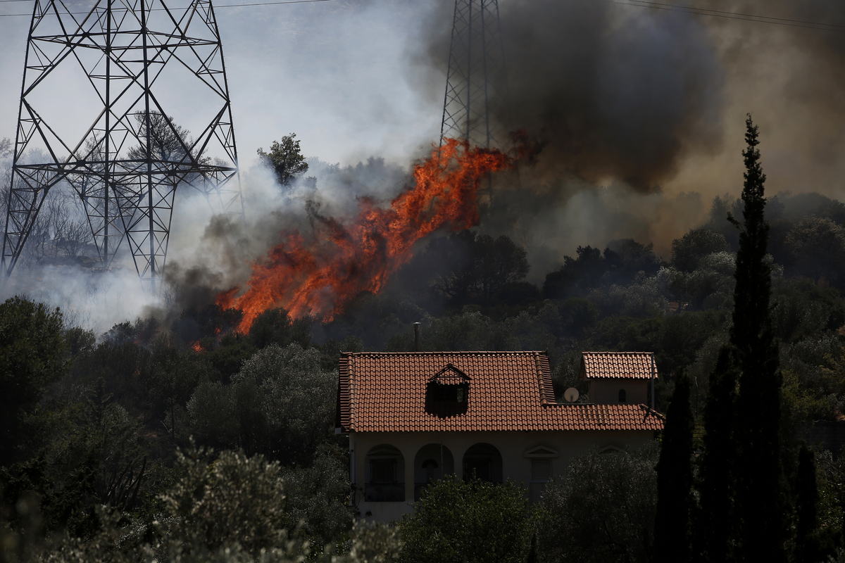 Φωτιά καίει δίπλα σε πυλώνα υψηλής τάσης ρεύματος, κατά τη διάρκεια πυρκαγιάς στον Κουβαρά Αττικής, τη Δευτέρα 17 Ιουλίου 2023. Μήνυμα μέσω του 112 εστάλη στους κατοίκους του Κουβαρά Αττικής, καλώντας τους να εκκενώσουν τον οικισμό Πέτα Κουβαρά και τις περιοχές Μελισσουργός και Τραμπουριάς, λόγω δασικής πυρκαγιάς που βρίσκεται σε εξέλιξη στην περιοχή.ΑΠΕ-ΜΠΕ/ΑΠΕ-ΜΠΕ/ΓΙΑΝΝΗΣ ΚΟΛΕΣΙΔΗΣ