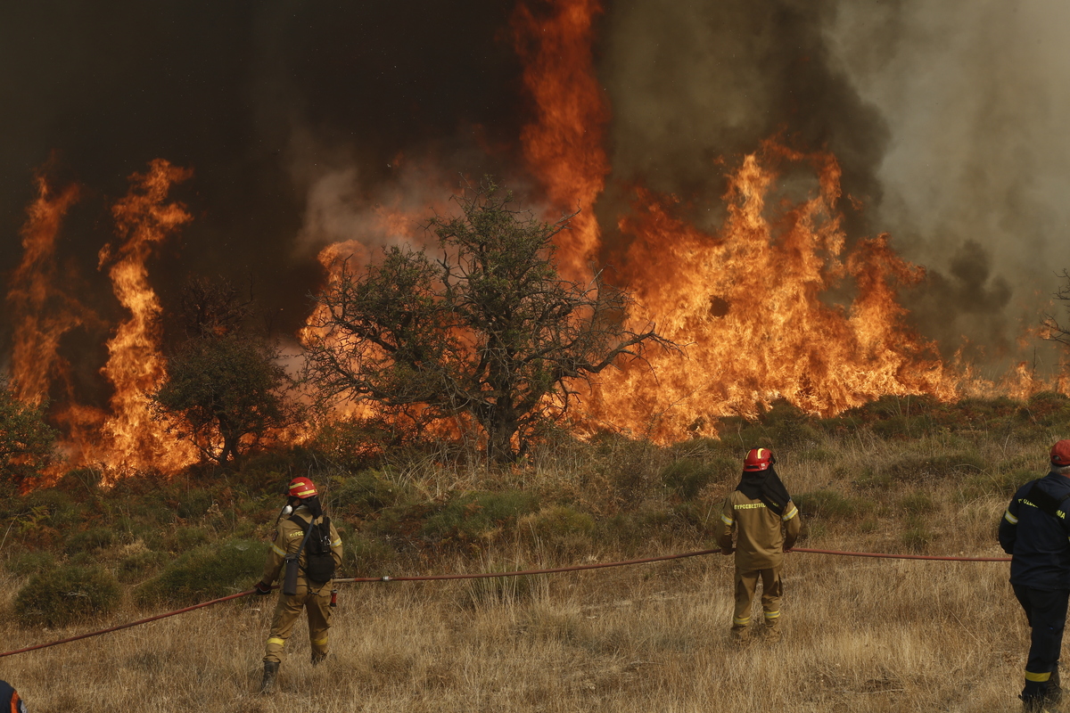 Πυρκαγιά εκδηλώθηκε στην περιοχή της Ερέτριας στην Εύβοια, καίγοντας ξερά χόρτα και ελαιόδεντρα.