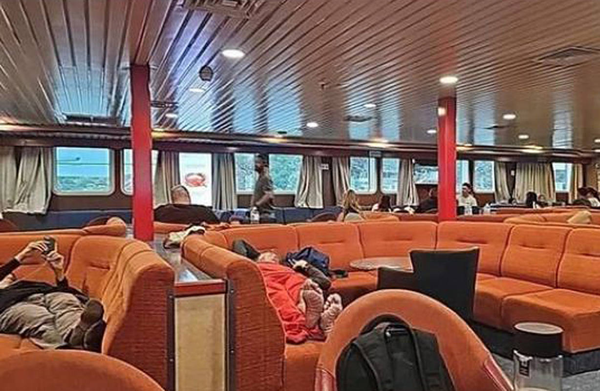 Όπως λέει η ίδια, μέσα στο πλοίο οι συνθήκες που επικρατούν είναι τραγικές. Γονείς με μικρά παιδιά που κλαίνε, επιβάτες που κοιμούνται στο πάτωμα, και παντελής έλλειψη παροχής ειδών πρώτης ανάγκης συνθέτουν το σκηνικό που επικρατεί.
