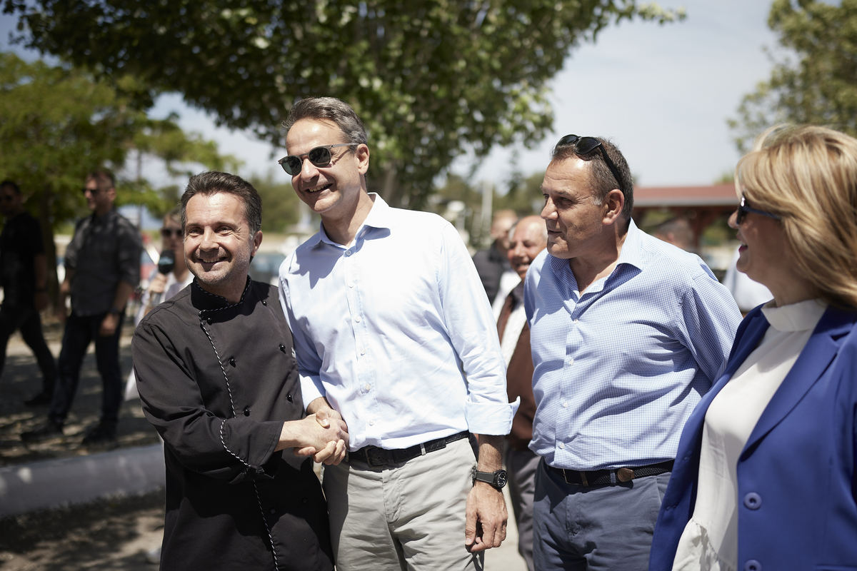 Ο Κυριάκος Μητσοτάκης περπάτησε την παραλία του Λιμένα και χαιρέτισε πολίτες.