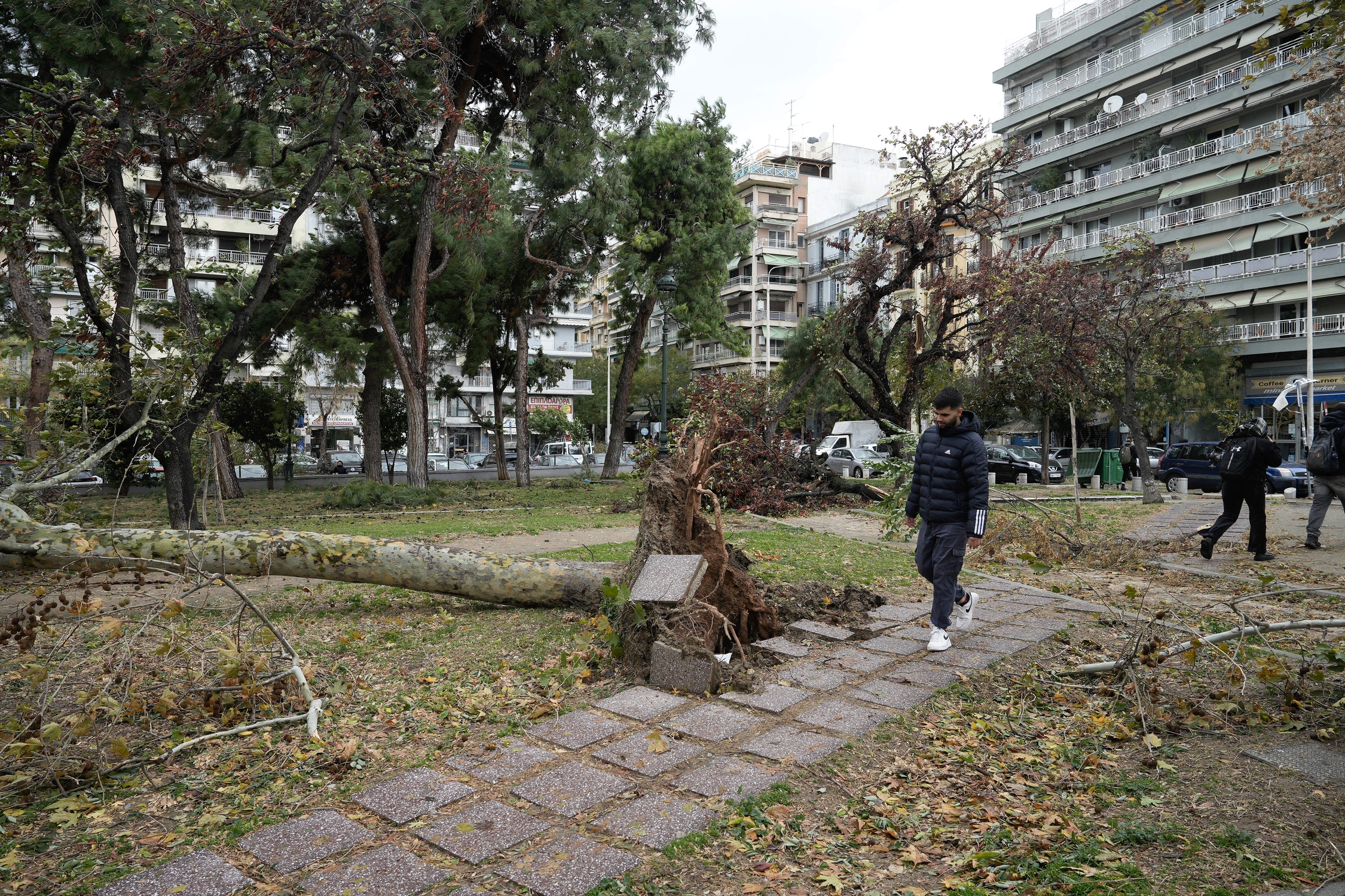 Fallen trees caused by the strong winds of the «Bora» storm in Thessaloniki, December 1, 2024. / Πτώσεις δέντρων που προκλείθηκαν απο τους ισχυρούς ανέμους της κακοκαιρίας «Bora» στη Θεσσαλονίκη, 1 Δεκεμβρίου 2024.