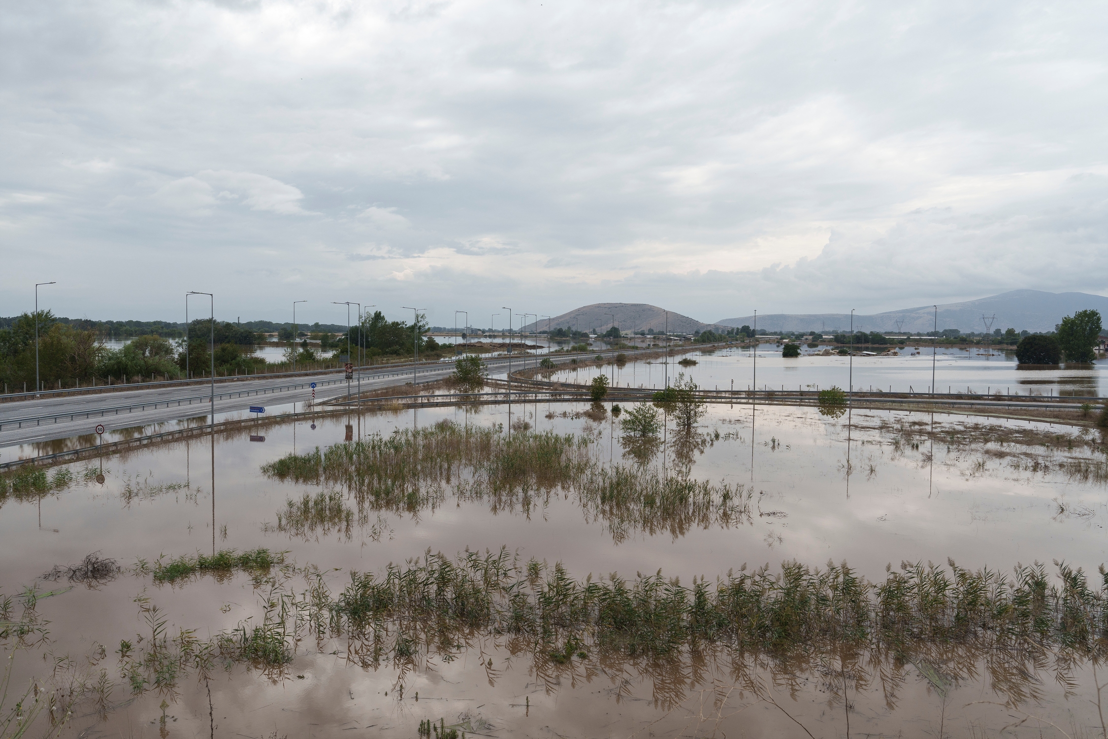 Flooded land in the village of Farkadona during the storm Daniel, in Trikala, Greece on September 7, 2023. / Πλημμύρες στη Φαρκαδόνα Τρικάλων κατά την διάρκεια της κακοκαιρίας Daniel, 7 Σεπτεμβρίου 2023.