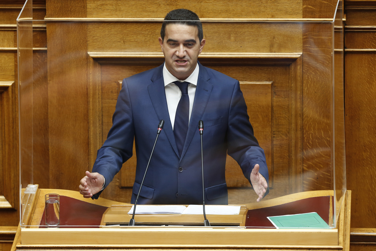 Ο επικεφαλής της Κοινοβουλευτικής Ομάδας του Κινήματος Αλλαγής Μιχάλης Κατρίνης μιλάει από το βήμα στην προ ημερησίας διατάξεως συζήτηση σε επίπεδο πολιτικών αρχηγών στην Ολομέλεια της Βουλής, Παρασκευή 26 Αυγούστου 2022. Συζητείται σήμερα, μετά από αίτημα του προέδρου του ΣΥΡΙΖΑ Αλέξη Τσίπρα η προ ημερησίας διατάξεως με θέμα «τις παρακολουθήσεις από την υπαγόμενη στον πρωθυπουργό ΕΥΠ, πολιτικών του αντιπάλων και δημοσιογράφων». Ο Αλέξης Τσίπρας κατέθεσε αίτημα για συζήτηση πολιτικών αρχηγών, μετά τις αποκαλύψεις ότι στόχοι παρακολούθησης έγιναν ο πρόεδρος του ΠΑΣΟΚ - Κίνημα Αλλαγής, Νίκος Ανδρουλάκης και ο δημοσιογράφος Θανάσης Κουκάκης. ΑΠΕ-ΜΠΕ/ΑΠΕ-ΜΠΕ/ΑΛΕΞΑΝΔΡΟΣ ΒΛΑΧΟΣ