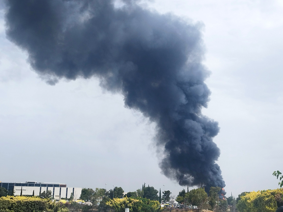 Σε βίντεο που κοινοποιήηθηκαν στα social media φαίνονται πυκνοί μαύροι καπνοί πάνω από το σημείο της έκρηξης.