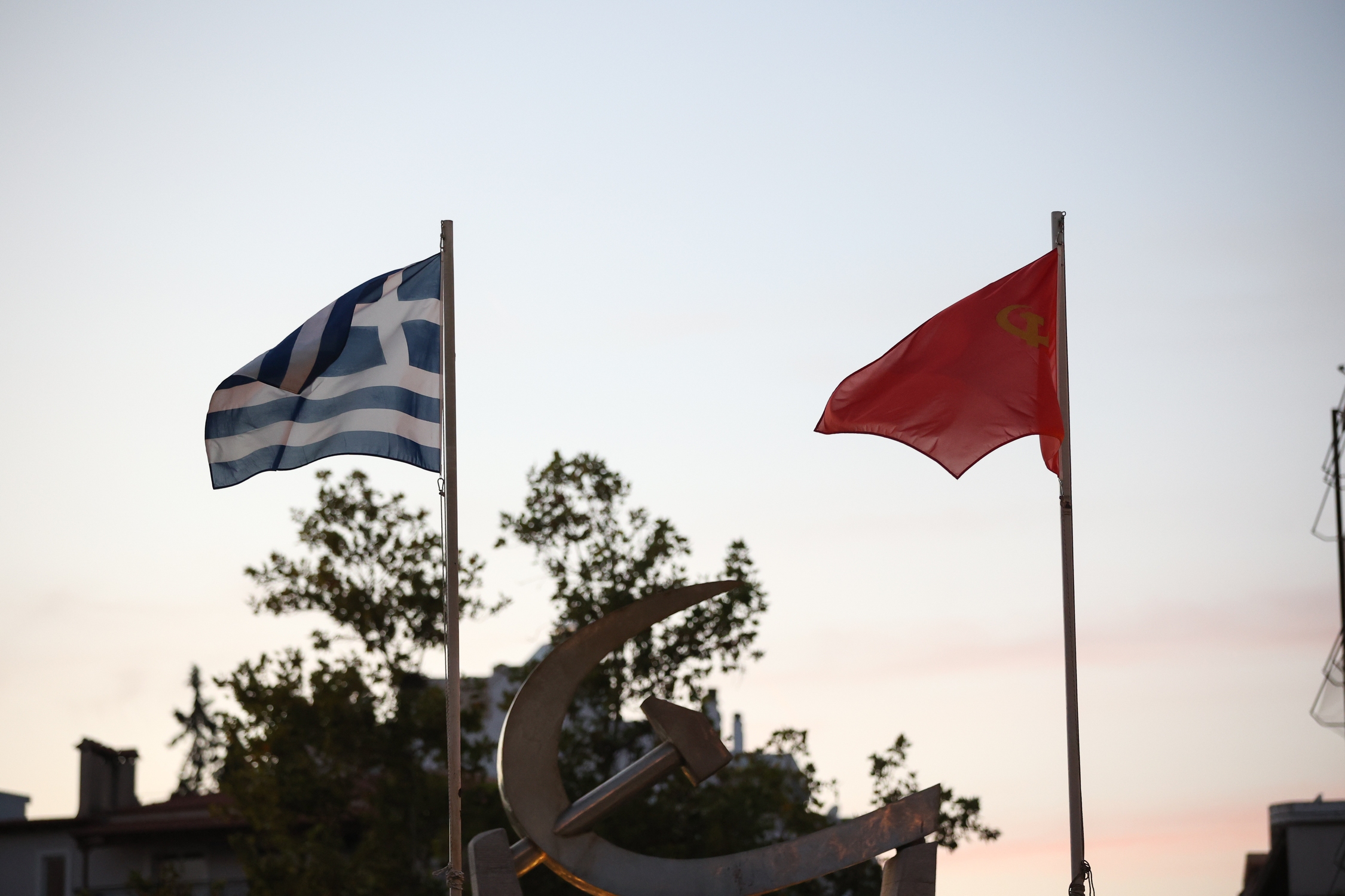 Farewell ceremony for the actor Kostas Kazakos in the Atrium of the headquarters of the Central Committee of the KKE, in Perissos, Athens, September 19, 2022. / Αποχαιρετιστήρια τελετή για τον ηθοποιό Κώστα Καζάκο στο Αίθριο της έδρας της ΚΕ του ΚΚΕ, στον Περισσό, Αθήνα, 19 Σεπτεμβρίου 2022.