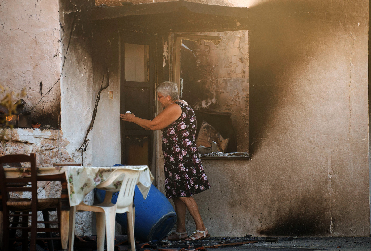 Η Ευαγγελία Κούσμηνα κοιτάζει το καμένο σπίτι της από πυρκαγιά που ξέσπασε στο χωριό Σώστης στην Κομοτηνή, Τρίτη 22 Αυγούστου 2023. Σε 5 ή 6 ανέρχονται τα σπίτια που κάηκαν στο χωριό Σώστης, όπως επισήμανε ο αντιπεριφερειάρχης Ροδόπης, Νίκος Τσαλικίδη ο οποίος διευκρίνισε ότι στην περιοχή υπάρχουν δύο πύρινα μέτωπα σε Μίσχο και 'Ανω Δροσίνη και ανέφερε ότι «η φωτιά έχει πάρει ανεξέλεγκτες διαστάσεις και έχει επεκταθεί στον ορεινό όγκο προς δυτικά». Ήδη με μηνύματα 112, έχουν ειδοποιηθεί προς εκκένωση οι κάτοικοι έξι περιοχών και συγκεκριμένα στις περιοχές Μίσχος, 'Ανω Δροσίνη, Ληνό, Μέγα Πιστό, Σώστης και Πολύανθος. Σύμφωνα με την πυροσβεστική υπηρεσία, για την κατάσβεση της πυρκαγιάς στην 'Ανω Δροσίνη επιχειρούν 23 πυροσβέστες με 11 υδροφόρα οχήματα και σε αυτήν του Μίσχου οκτώ πυροσβέστες με τέσσερα υδροφόρα οχήματα. Από αέρος συνδράμουν δύο αεροσκάφη. ΑΠΕ-ΜΠΕ/ΑΠΕ-ΜΠΕ/ΑΧΙΛΛΕΑΣ ΧΗΡΑΣ