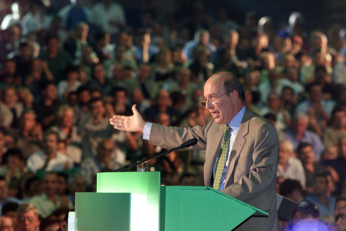 Φωτογραφία αρχείου που δόθηκε στη δημοσιότητα την Κυριακή 5 Ιανουαρίου 2025 από ομιλία του πρωθυπουργού Κώστα Σημίτη την 3η ημέρα των εργασιών του 6ου Συνεδρίου του ΠΑΣΟΚ, 13 Οκτωβρίου 2001. Απεβίωσε ο πρώην πρωθυπουργός Κώστας Σημίτης σε ηλικία 88 ετών, σήμερα τις πρώτες πρωινές ώρες. Σύμφωνα με πληροφορίες βρισκόταν στο εξοχικό του στους Αγίους Θεοδώρους. Όπως ανέφερε μιλώντας στο ΑΠΕ-ΜΠΕ ο διοικητής του Νοσοκομείου Κορίνθου, Γρηγόρης Καρπούζης, ο πρώην πρωθυπουργός διακομίστηκε στις 07:31 χωρίς τις αισθήσεις του και ο θάνατός του διαπιστώθηκε στις 8 παρά 10, μετά από ανεπιτυχείς προσπάθειες ανάνηψης. ΑΠΕ-ΜΠΕ/ΑΠΕ-ΜΠΕ/ΣΥΜΕΛΑ ΠΑΝΤΖΑΡΤΖΗ
