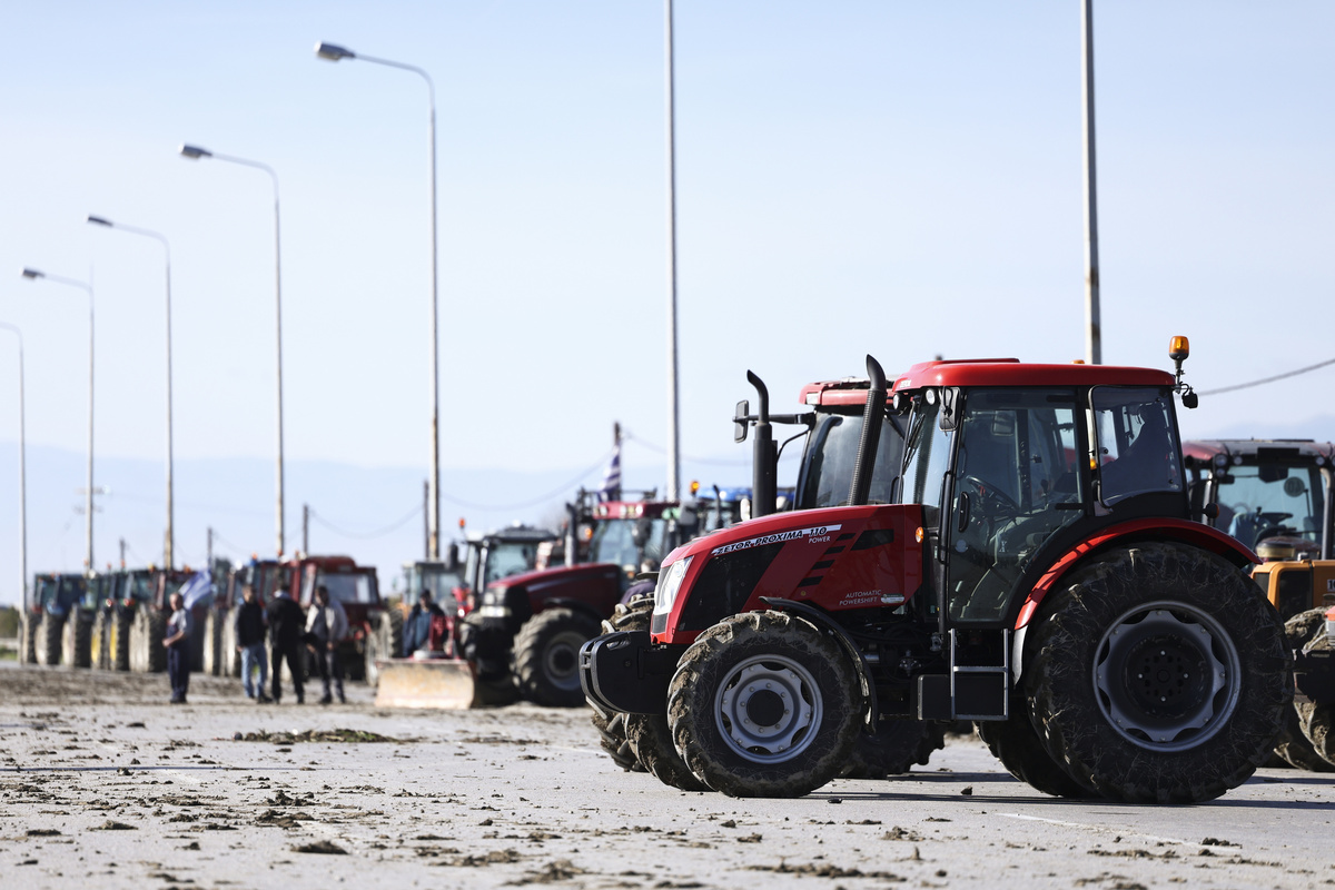 Αγρότες έχουν παρατάξει τα τρακτέρ τους στην Εθνική Οδό Θεσσαλονίκης-Αθήνας, στο ύψος των διοδίων Μαλγάρων. ΑΠΕ-ΜΠΕ/ΑΧΙΛΛΕΑΣ ΧΗΡΑΣ