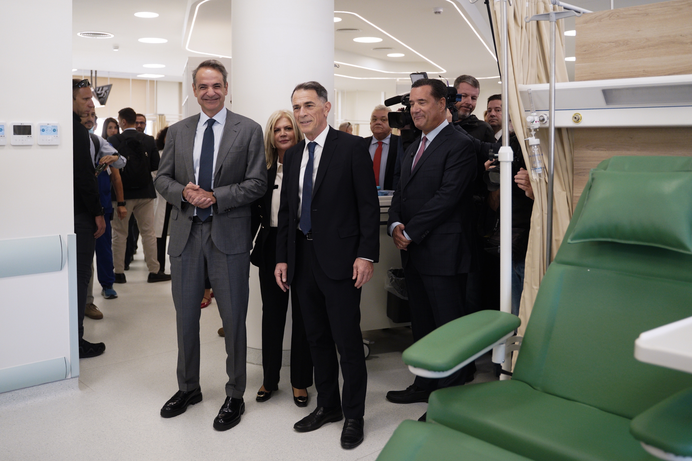 Στην τελετή εγκαινίων του νέου Ογκολογικού Κέντρου στο Πανεπιστημιακό Γενικό Νοσοκομείο «Αττικόν» παρέστη το πρωί ο Κυριάκος Μητσοτάκης και στη συνέχεια επισκέφτηκε το ανακαινισμένο τμήμα επειγόντων περιστατικών. Ο πρωθυπουργός ξεναγήθηκε στις νέες εγκαταστάσεις από τον υπουργό Υγείας Άδωνι Γεωργιάδη, τον διοικητή του νοσοκομείου Σπύρο Αποστολόπουλο και τη διευθύντρια του Κέντρου, Αμάντα Ψυρρή, και ενημερώθηκε για τις σύγχρονες υποδομές και τις δυνατότητες του χώρου θεραπείας ως προς τη φροντίδα των ασθενών.