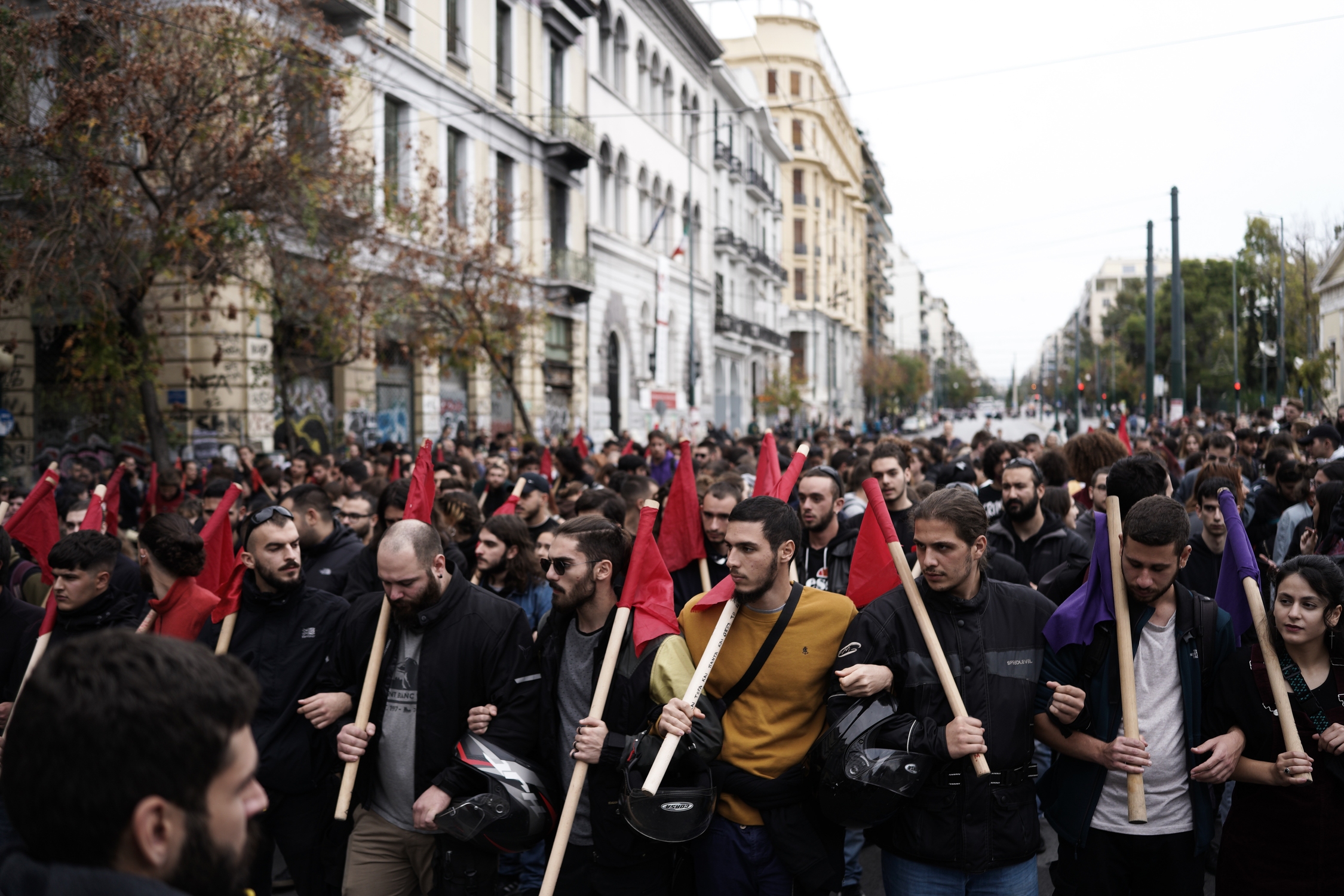Φοιτητικοί σύλλογοι με σύνθημα «οι εξεγέρσεις δεν μπαίνουν στα μουσεία, εμπρός για της γενιάς μας τα Πολυτεχνεία», φορείς, ο ΣΥΡΙΖΑ, το ΠΑΣΟΚ- ΚΙΝΑΛ, το ΜέΡΑ 25, κόμματα κι οργανώσεις της εξωκοινοβουλευτικής αριστεράς, εργατικά σωματεία και συλλογικότητες του αντιεξουσιαστικού χώρου συγκεντρώθηκαν στην Πλατεία Κλαυθμώνος και κατευθύνθηκαν προς την αμερικάνικη πρεσβεία. Σε εξέλιξη η πορεία για την εξέγερση του Πολυτεχνείου