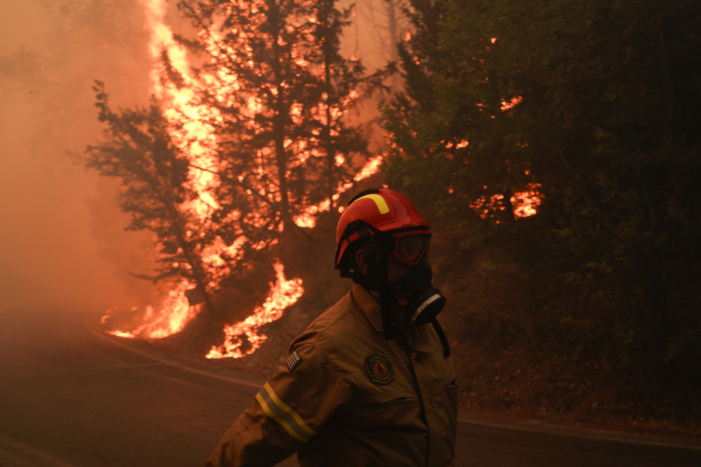 Το έργο των πυροσβεστικών δυνάμεων συνδράμουν εθελοντές πυροσβέστες.