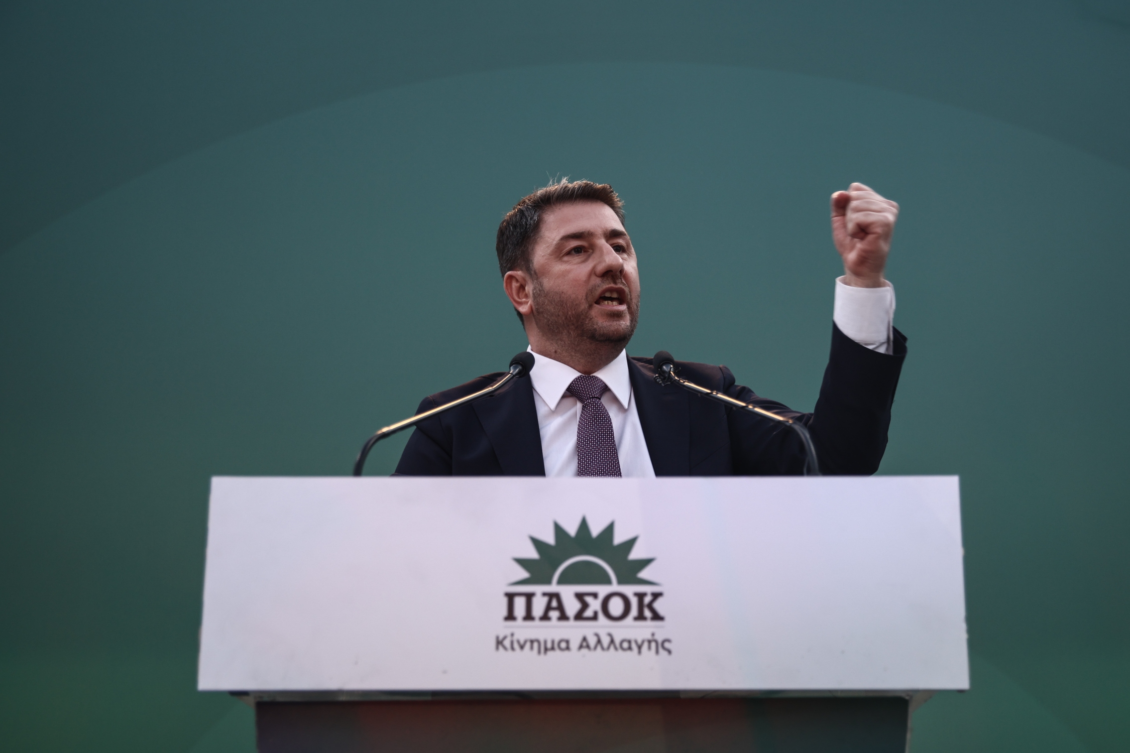PASOK leader Nikos Androulakis, delivers a speech during an election campaign rally in Athens, Greece on May 17, 2023. Greece goes to the polls on May 21, in the country’s general election. / Ομιλία του προέδρου του ΠΑΣΟΚ - ΚΙΝΑΛ, Νίκου Ανδρουλάκης κατα την διάρκεια προεκλογικής συγκέντρωσης στην Αθήνα, 17 Μαΐου 2023
