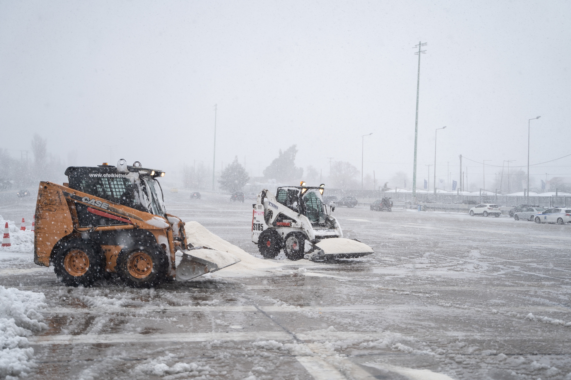 Cold weather front Barbara hits Greece. Graders clean the road from snow and ice at the toll station of Afidnes on the National Road of Greece, Afidnes, Athens, on February 5, 2023 / Κακοκαιρία Μπάρμπαρα προκαλεί χιονόπτωση. Εκχιονιστικά μηχανήματα, στο σταθμο διοδίων των Αφιδνών, στις 5 Φεβρουαρίου, 2023