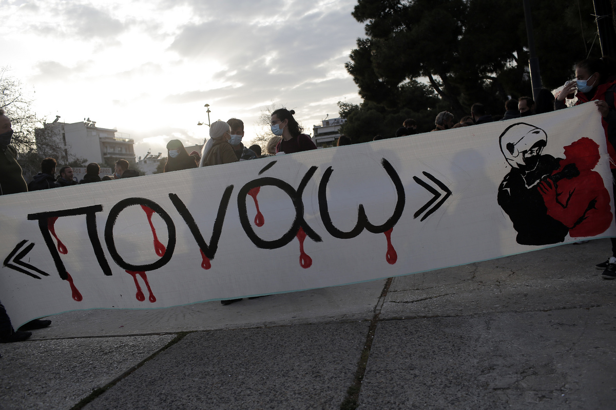 Διαδηλωτές συμμετέχουν σε συγκέντρωση διαμαρτυρίας κατοίκων και συλλογικοτήτων στην πλατεία της Νέας Σμύρνης κατά της αστυνομικής βίας, Τρίτη 09 Μαρτίου 2021. ΑΠΕ-ΜΠΕ/ΑΠΕ-ΜΠΕ/ΚΩΣΤΑΣ ΤΣΙΡΩΝΗΣ