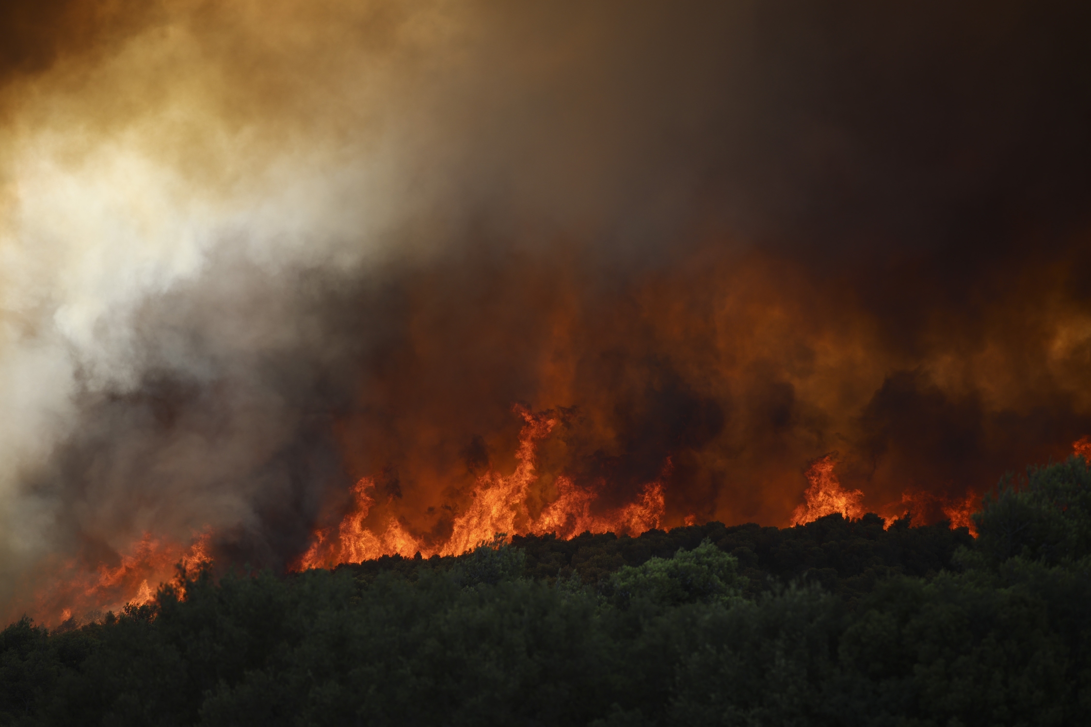 Wildfire in Dervenochoria Western Attica, Greece on July 18, 2023. / Κατάσβεση πυρκαγιάς Δερβενοχώρια, Δυτική Αττική, στις 18 Ιουλίου 2023.