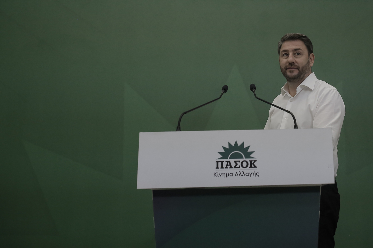 Ο πρόεδρος του ΠΑΣΟΚ-ΚΙΝΑΛ, Νίκος Ανδρουλάκης, κάνει δηλώσεις στα κεντρικά γραφεία του κόμματος, μετά την ανακοίνωση των αποτελεσμάτων των βουλετικών εκλογών, Αθήνα, Κυριακή 25 Ιουνίου 2023. ΑΠΕ-ΜΠΕ/ΑΠΕ-ΜΠΕ/ΚΩΣΤΑΣ ΤΣΙΡΩΝΗΣ