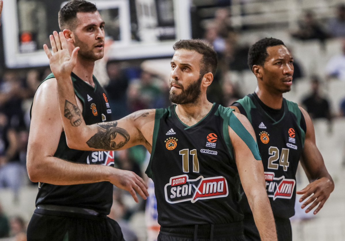 Ο παίκτης του Παναθηναϊκού Νίκος Παππάς (Κ) μετά από καλάθι που πέτυχε, κατά τη διάρκεια του αγώνα μεταξύ των ομάδων Παναθηναϊκός – Βαλένθια για την 7η αγωνιστική της Ευρωλίγκα, στο ΟΑΚΑ, την Παρασκευή 8 Νοεμβρίου 2019. Τελικό αποτέλεσμα Παναθηναϊκός – Βαλένθια 91 - 80. ΑΠΕ-ΜΠΕ/ΑΠΕ-ΜΠΕ/JOHN ANDREOU