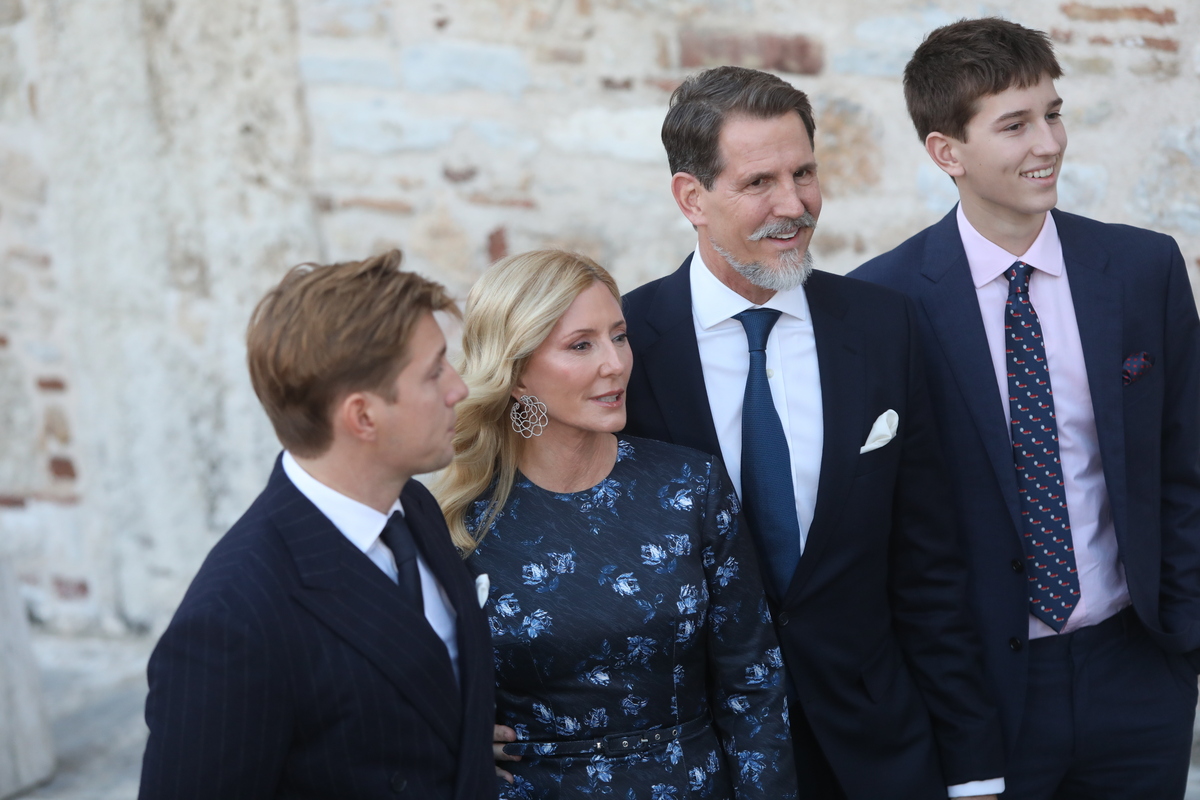 Ο Παύλος και η Μαρί Σαντάλ με τους γιους τους προσέρχονται για τον γάμο του Νικολάου Ντε Γκρες με τη Χρυσή Βαρδινογιάννη, στον Ιερό Ναό του Αγίου Νικολάου Ραγκαβά, στην Πλάκα, Παρασκευή 07 Φεβρουαρίου 2025. Ο Νικόλαος Ντε Γκρες, γιος του εκλιπόντος πρώην βασιλιά Κωνσταντίνου, παντρεύεται με τη Χρυσή Βαρδινογιάννη, κόρη του Γιώργου Βαρδινογιάννη. ΑΠΕ-ΜΠΕ/ΑΠΕ-ΜΠΕ/ΓΙΩΡΓΟΣ ΒΙΤΣΑΡΑΣ