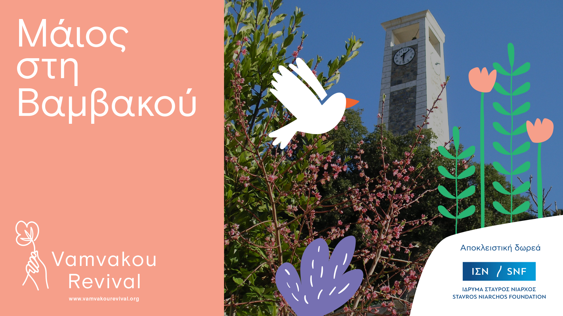 «Ο Μάιος έφθασε! Εμπρός! Βήμα ταχύ! Να τον προϋπαντήσουμε παιδιά στην εξοχή». Τι λέτε να πάρουμε τα ανθισμένα βουνά μαζί; Η Vamvakou Revival σας προσκαλεί να συμμετέχετε σε δραστηριότητες για μικρούς και μεγάλους με θέμα την τέχνη, τον χορό και το θέατρο, το παιχνίδι, τη γη, το πείραμα και την τεχνολογία, οι οποίες εντάσσονται στο πλαίσιο της πρωτοβουλίας Αναβίωσης της Βαμβακούς που υλοποιείται με αποκλειστική δωρεά του Ιδρύματος Σταύρος Νιάρχος (ΙΣΝ).
