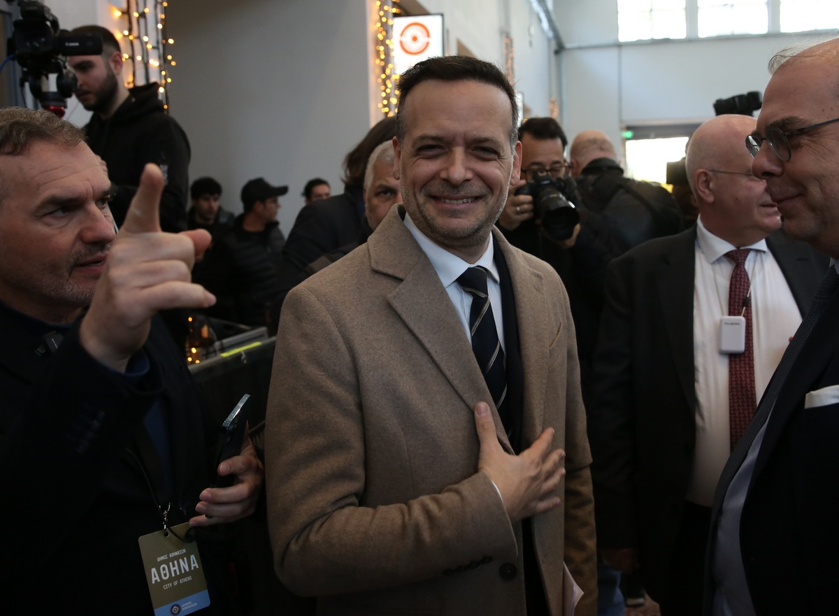Ο νέος δήμαρχος Χάρης Δούκας (Κ), προσέρχεται στη Δημοτική Αγορά της Κυψέλης για την τελετή ορκωμοσίας του νέου δημάρχου, Χάρη Δούκα, και των μελών του Δημοτικού Συμβουλίου, Αθήνα, Πέμπτη 28 Δεκεμβρίου 2023. Πολίτες και αριστερές οργανώσεις συμμετέχουν σε συγκέντρωση διαμαρτυρίας στην ορκωμοσία του νέου δημοτικού συμβουλίου της Αθήνας, στην οποία θα συμμετάσχει ο καταδικασμένος για την εγκληματική οργάνωση της Χρυσής Αυγής, Ηλίας Κασιδιάρης, στην Δημοτική Αγορά Κυψέλης, Η τελετή ορκωμοσίας του νέου δημάρχου, Χάρη Δούκα, και των μελών του Δημοτικού Συμβουλίου πραγματοποιείται σήμερα στη Δημοτική Αγορά της Κυψέλης, πλην της ορκωμοσίας του Ηλία Κασιδιάρη για λόγους ασφάλειας. ΑΠΕ-ΜΠΕ/ΑΠΕ-ΜΠΕ/ΟΡΕΣΤΗΣ ΠΑΝΑΓΙΩΤΟΥ