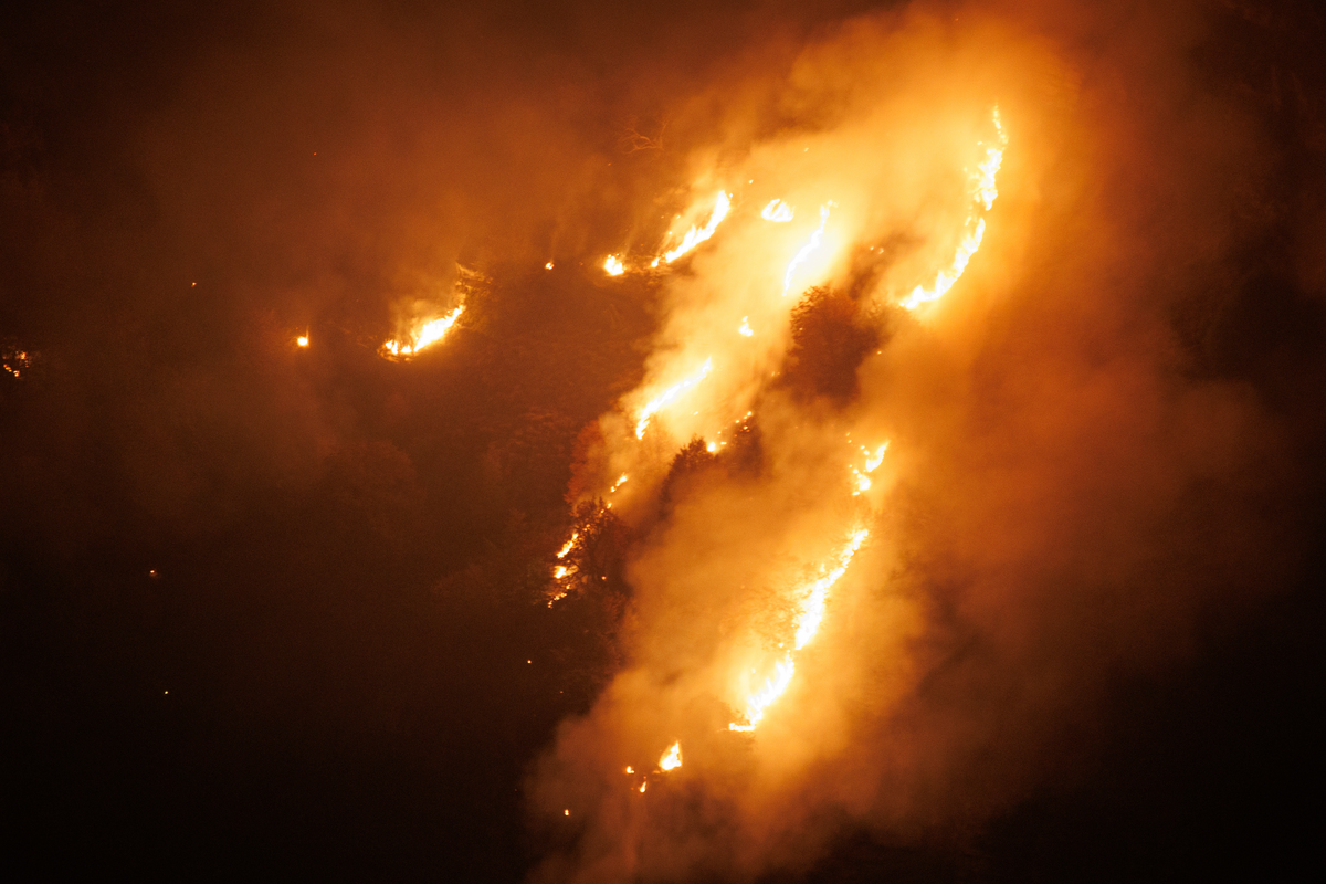 Φωτογραφία που δόθηκε σήμερα στη δημοσιότητα και εικονίζει φωτιά στην κορυφογραμμή του όρους Παγγαίο, Σάββατο 24 Αυγούστου 2024. Με τη συνδρομή οκτώ εναέριων μέσων συνεχίζεται από το πρωί η επιχείρηση κατάσβεσης της φωτιάς που καίει για πέμπτη ημέρα στην κορυφογραμμή του όρους Παγγαίο, στην Καβάλα. Σύμφωνα με πηγές της Πυροσβεστικής, υπάρχουν δύο ενεργά μέτωπα- το πρώτο νοτιοδυτικά του Πλατανότοπου και το δεύτερο βορειοδυτικά της περιοχής των κεραιών. Συνολικά στην περιοχή επιχειρούν 280 πυροσβέστες, με 25 ομάδες πεζοπόρων τμημάτων, 46 οχήματα, ενώ ρίψεις από αέρος πραγματοποιούν τέσσερα πυροσβεστικά αεροσκάφη και τέσσερα ελικόπτερα. Δευτέρα 26 Αυγούστου 2024. ΑΠΕ-ΜΠΕ/ΑΠΕ-ΜΠΕ/ΠΑΝΟΣ ΡΟΝΤΟΣ