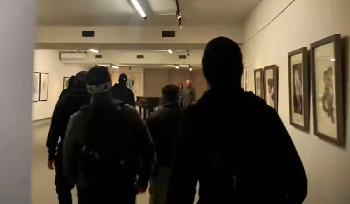 Ως δράστες της ενέργειας εμφανίζονται μέλη της Χρυσής Αυγής, όπως προκύπτει από σχετικό βίντεο που ανήρτησαν στο διαδίκτυο, όπου εμφανίζονται να υποχρεώνουν τους διοργανωτές να κατεβάσουν τα έργα και στη συνέχεια να βάζουν κόκκινες κορδέλες στην είσοδο, απαγορεύοντας την πρόσβαση, ενώ σκόρπισαν φυλλάδια με εθνικιστικό περιεχόμενο.