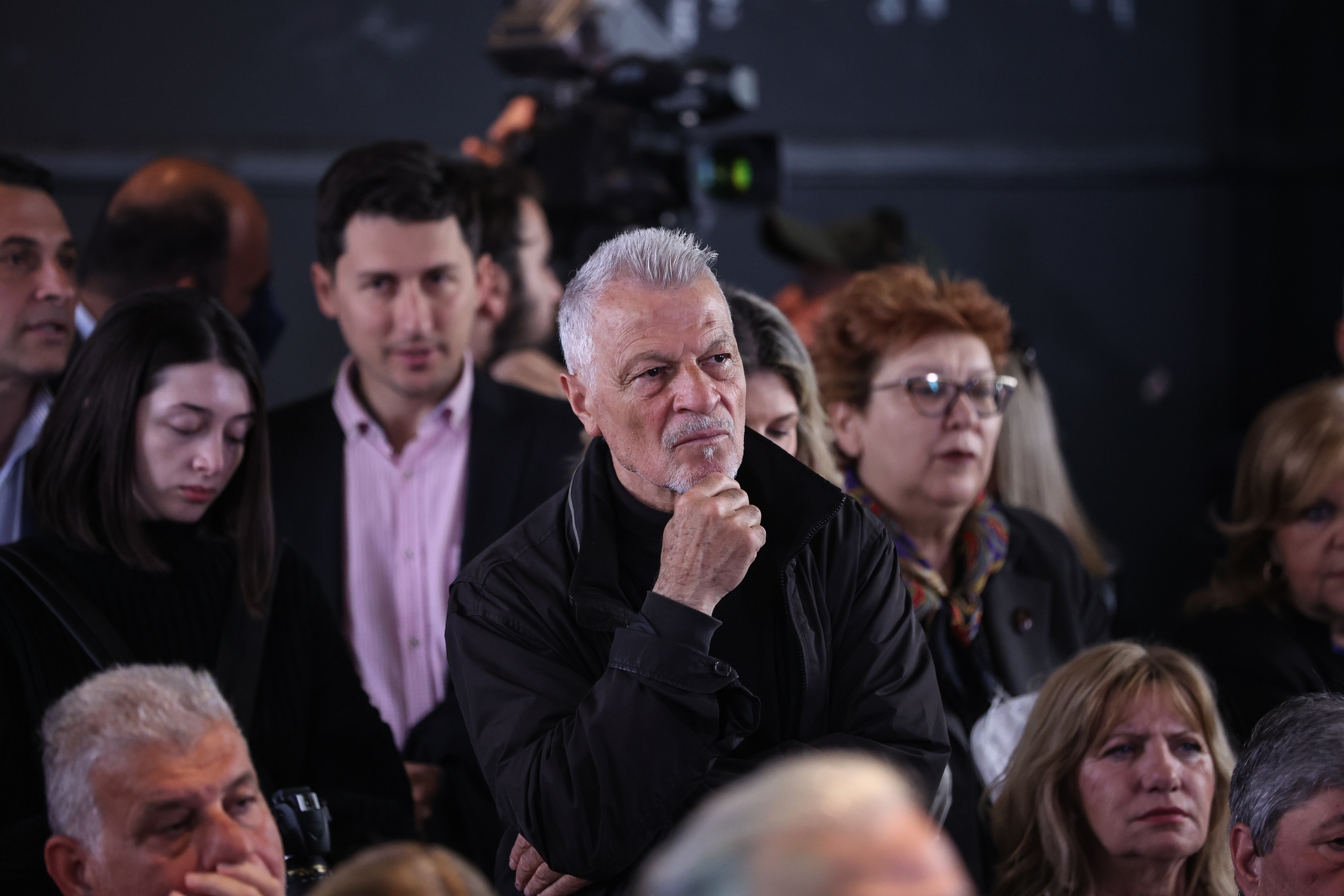 The President of PASOK-Movement of Change party, Nikos Androulakis, announces the party's program, as part of his pre-electoral campaign, for the upcoming elections of May 21, in Athens, Greece, on May 5, 2023. / Παρουσίαση του πλαισίου προγραμματικών προτεραιοτήτων του ΠΑΣΟΚ-ΚΙΝΑΛ απο τον πρόεδρο του κόμματος Νίκο Ανδρουλάκη, στα πλαίσια της προεκλογικής του καμπάνιας για τις επερχόμενες εκλογές στις 21 Μαίου. Αθήνα, 5 Μαίου, 2023