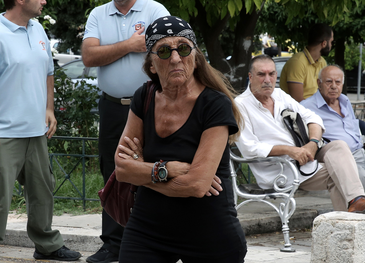 Η ερμηνεύτρια Γιώτα Γιάννα παρίσταται στην κηδεία του στιχουργού Μάνου Ελευθερίου στο Α' Νεκροταφείο Αθηνών, Τρίτη 24 Ιουλίου 2018. ΑΠΕ-ΜΠΕ/ΑΠΕ-ΜΠΕ/ΣΥΜΕΛΑ ΠΑΝΤΖΑΡΤΖΗ
