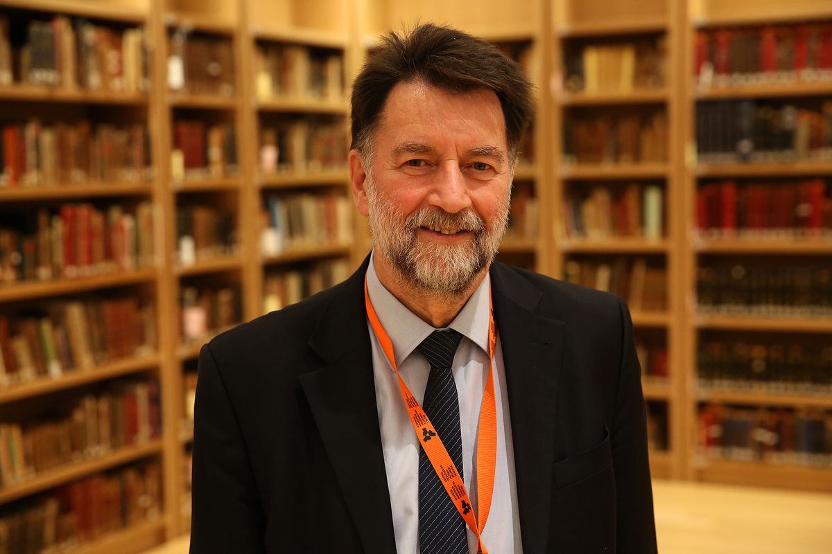 Ο γενικός διευθυντής της Εθνικής Βιβλιοθήκης της Ελλάδας Φίλιππος Τσιμπόγλου στους χώρους της βιβλιοθήκης στο ΚΠΙΣΝ, Αθήνα Τρίτη 16 Οκτωβρίου 2018. Ο Φίλιππος Τσιμπόγλου ξενάγησε την υπουργό Πολιτισμού Μυρσίνη Ζορμπά και την υφυπουργό Παιδείας Μερόπη Τζούφη στα εργαστήρια συντήρησης της ΕΒΕ. ΑΠΕ-ΜΠΕ/ΑΠΕ-ΜΠΕ/ΟΡΕΣΤΗΣ ΠΑΝΑΓΙΩΤΟΥ