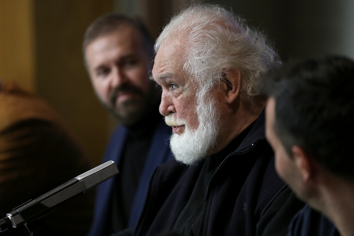 Ο Κώστας Καζάκος(Κ) μιλά κατά τη διάρκεια της συνέντευξης Τύπου για την παράσταση "Όμορφη πόλη" του Μίκη Θεοδωράκη που θα παρουσιαστεί στο Μέγαρο Μουσικής Αθηνών, την Τρίτη 26 Νοεμβρίου 2019. Η "Όμορφη πόλη" σε σκηνοθεσία Γιώργου Βάλαρη θα που θα παρουσιαστεί στο Μέγαρο από τις 17 έως 30 Ιανουαρίου 2020. Στην παράσταση ερμηνεύουν Γιάννης Κότσιρας, Δημήτρης Μπάσης, Σαλίνα Γαβαλά και συμμετέχουν οι ηθοποιοί: Κώστας Καζάκος, Γιώργος Κιμούλης, Πέγκυ Σταθακοπούλου, Ελισάβετ Μουτάφη, Κωνσταντίνος Καζάκος, Αιμίλιος Ράφτης, Άκης Σιδέρης και η Λήδα Πρωτοψάλτη. Guest ερμηνευτές: Μελίνα Ασλανίδου, Μανώλης Μητσιάς, Γιώτα Νέγκα, Μπάμπης Στόκας, Ελένη Τσαλιγοπούλου. ΑΠΕ-ΜΠΕ/ΜΕΓΑΡΟ ΜΟΥΣΙΚΗΣ ΑΘΗΝΩΝ/ΧΑΡΗΣ ΑΚΡΙΒΙΑΔΗΣ