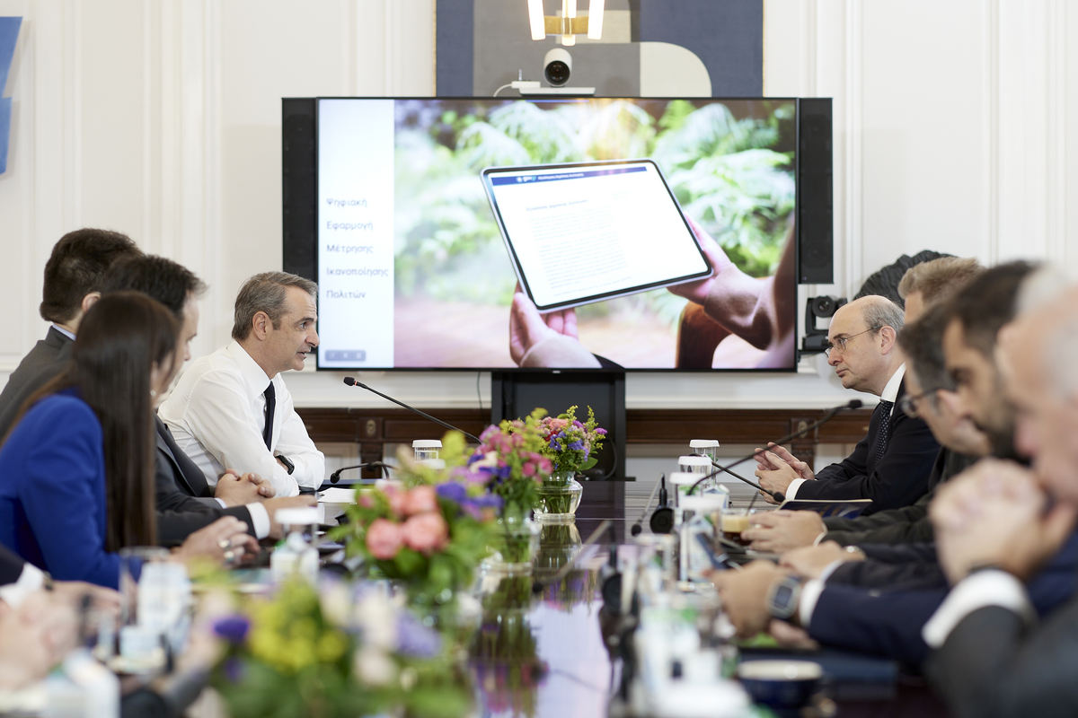 (Ξένη Δημοσίευση) Σύσκεψη υπό τον πρωθυπουργό Κυριάκο Μητσοτάκη για την παρουσίαση της αξιολόγησης δημόσιων υπηρεσιών από τους πολίτες, Αθήνα, Τρίτη 6 Μαΐου 2025. Ο Πρωθυπουργός Κυριάκος Μητσοτάκης προήδρευσε το πρωί σε διυπουργική σύσκεψη όπου παρουσιάστηκε η νέα ηλεκτρονική αξιολόγηση δεκάδων υπηρεσιών του ευρύτερου δημόσιου τομέα από τους πολίτες. ΑΠΕ-ΜΠΕ/ΓΡΑΦΕΙΟ ΤΥΠΟΥ ΠΡΩΘΥΠΟΥΡΓΟΥ/ΔΗΜΗΤΡΗΣ ΠΑΠΑΜΗΤΣΟΣ