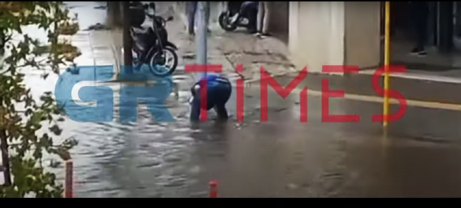 Οι ντροπιαστικές εικόνες όμως δε είναι φυσικά αυτές της βροχόπτωσης, αλλά ένα βίντεο που κάνει τον γύρο του διαδικτύου και απαθανατίζει έναν περαστικό, που αφού ο Δήμος δεν επενέβη, αποφάσισε να πάρει την κατάσταση -κυριολεκτικά- στα χέρια του, ξεβουλώνοντας μόνος του ένα από τα πολλά φρεάτια, που γέμισαν.