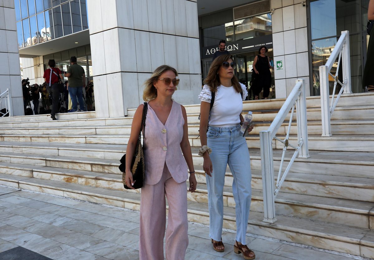 Οι ηθοποιοί Άννα – Μαρία Παπαχαραλάμπους (Δ) και Λένα Δροσάκη (2Δ) εξέρχονται από το Μικτό Ορκωτό Εφετείο Αθηνών, μετά την ανακοίνωση της ετυμηγορίας του δικαστηρίου στην υπόθεση του Πέτρου Φιλιππίδη, Τρίτη 15 Ιουλίου 2025. ΑΠΕ-ΜΠΕ/ΑΛΕΞΑΝΔΡΟΣ ΒΛΑΧΟΣ